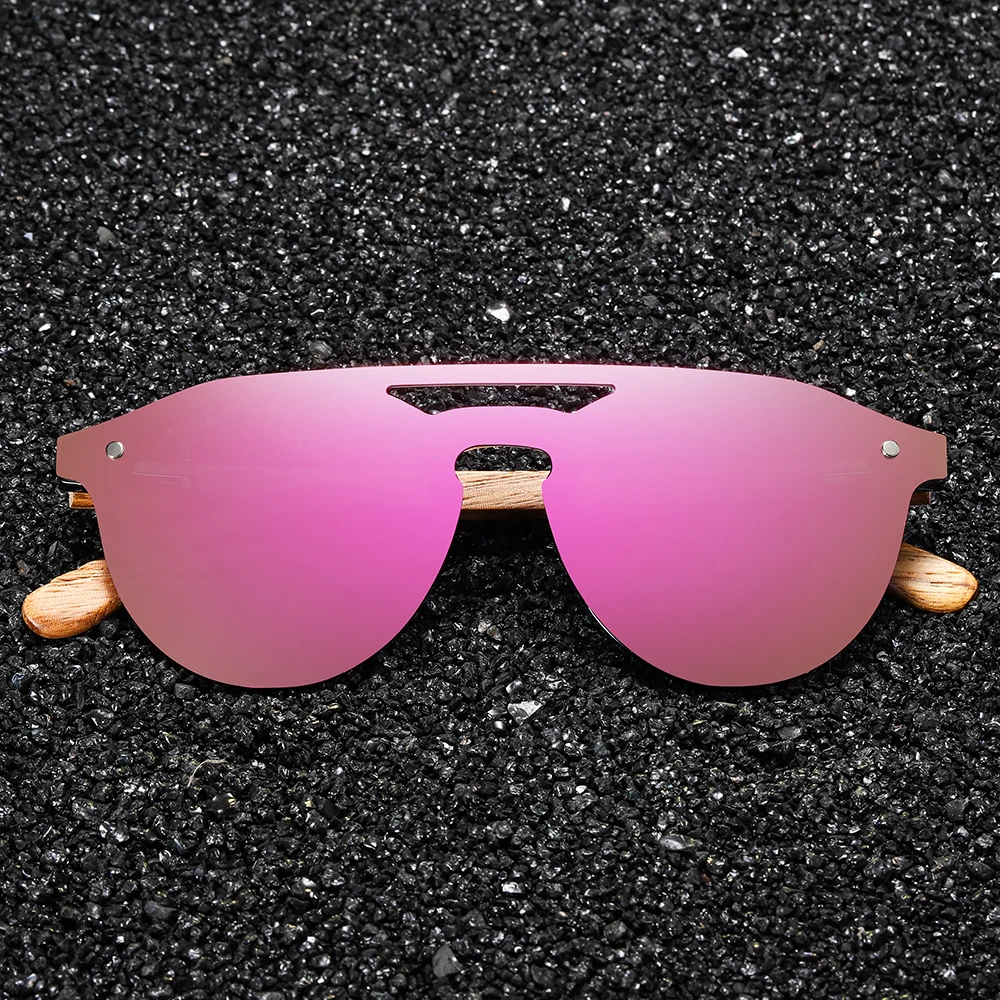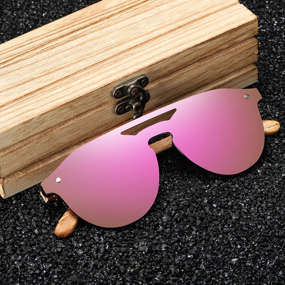 Женские бамбуковые солнцезащитные очки с поляризационными зеркальны...