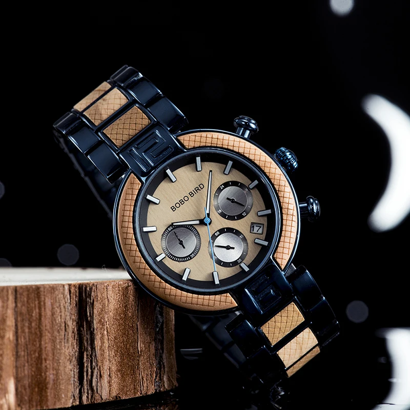 Мужские деревянные кварцевые часы BOBO BIRD, Роскошные мужские часы...