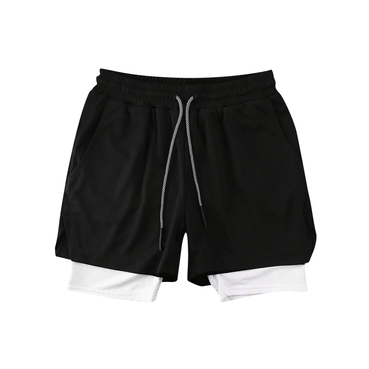 Мужские спортивные шорты для тренажерного зала Бег дышащие тренировки для фитнеса двухслойная рубашка со скрытыми карманами повседневные шорты