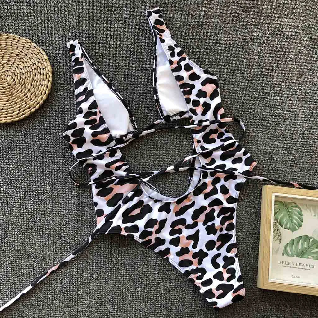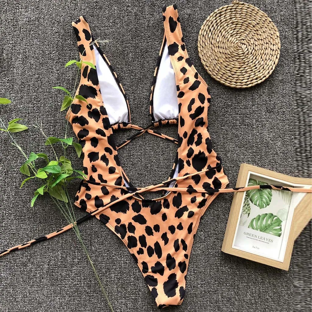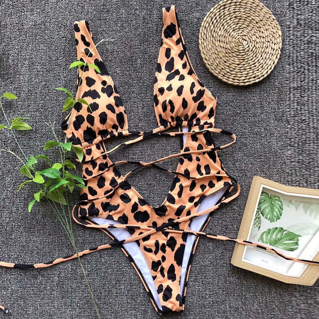 Женский слитный купальник, сексуальный купальник с леопардовым принтом, купальники с эффектом пуш-ап бандаж, женский пляжный костюм с открытой спиной, 2021
