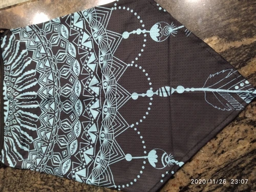 Классная косынка. Ткань эластичная, держится хорошо. Рекомендую.