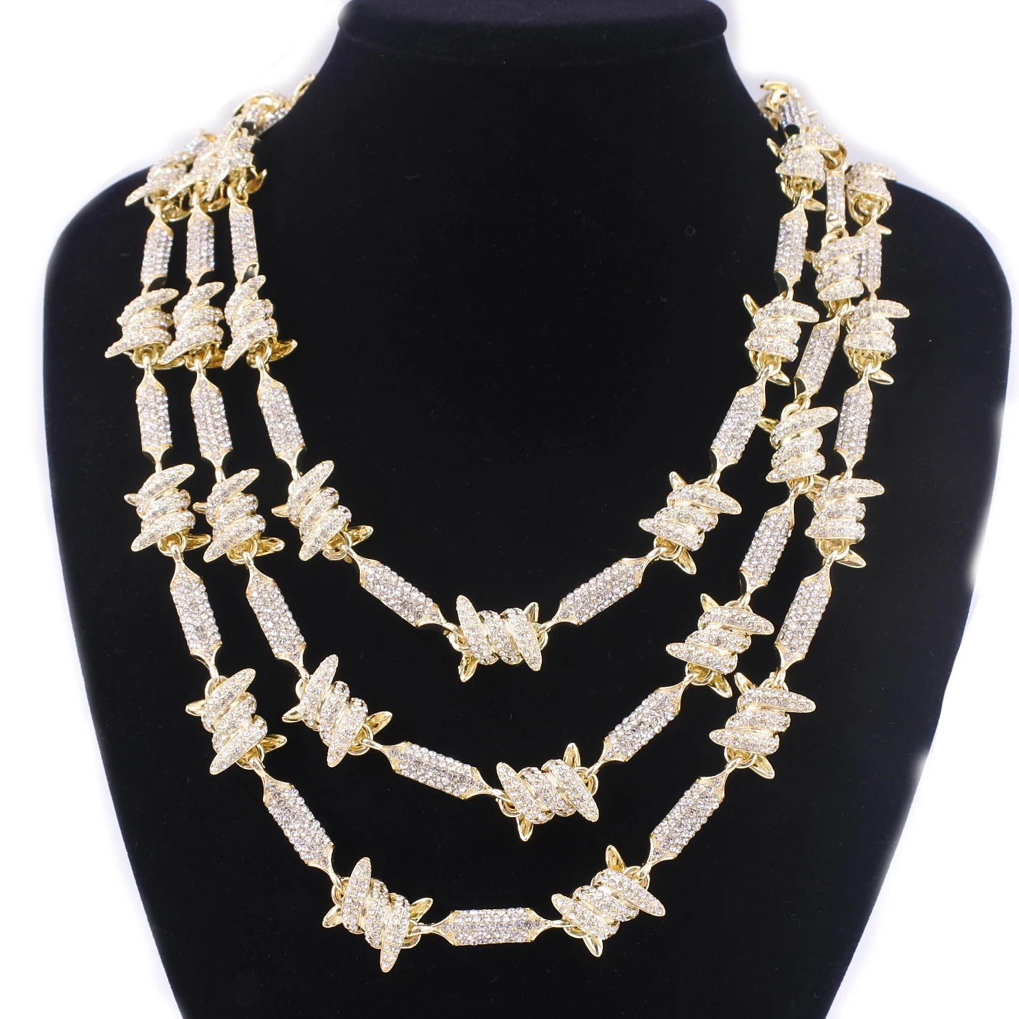 Цепочка в стиле хип-хоп для мужчин и женщин, ожерелье с блестящими рожками, Ювелирное Украшение со сверкающими звеньями, колье-чокер в стиле рэпера, цвет золото и серебро