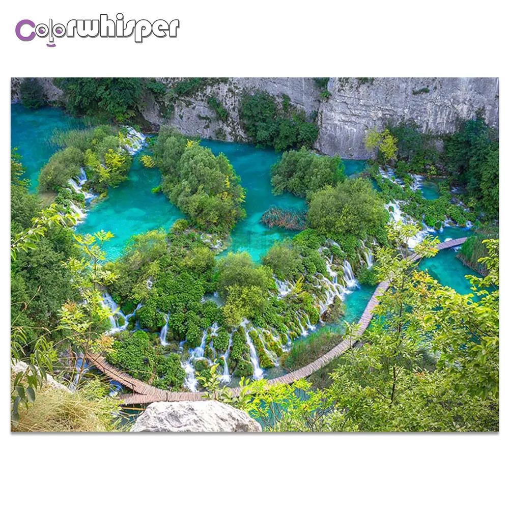 Полноразмерная картина Daimond 5D, квадратныекруглые пятна, Озеры, пейзаж, водопад, Фотофон D284