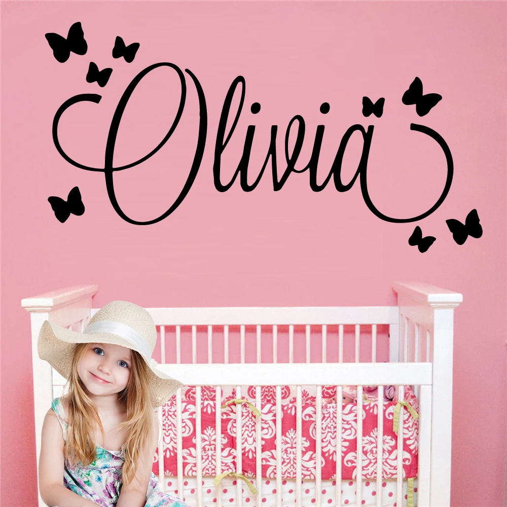 Большой размер персонализированные пользовательские имя наклейка на стену художественная Наклейка Детские настенные наклейки для девочек украшение для комнаты мальчиков Спальня росписи