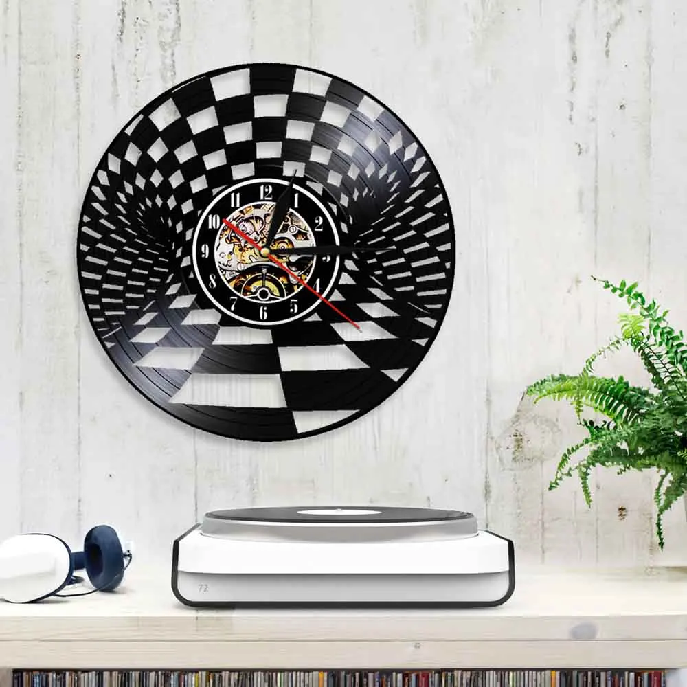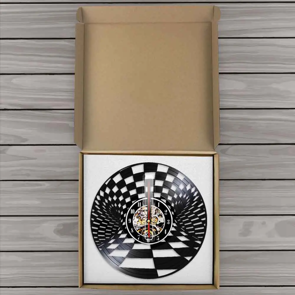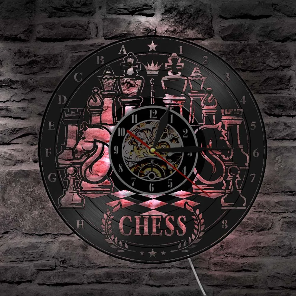 Часы настенные с виниловой пластинкой, шахматная доска, настольная игра, бесшумные часы без тикания для гостиной