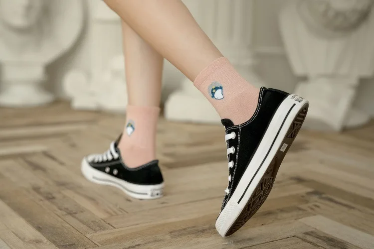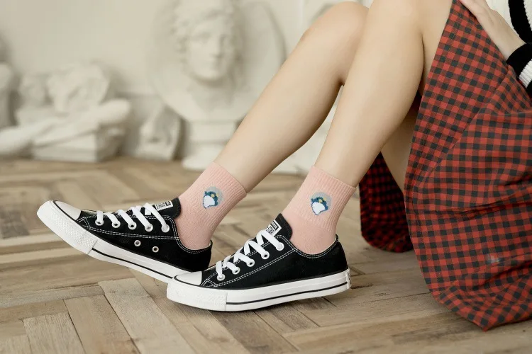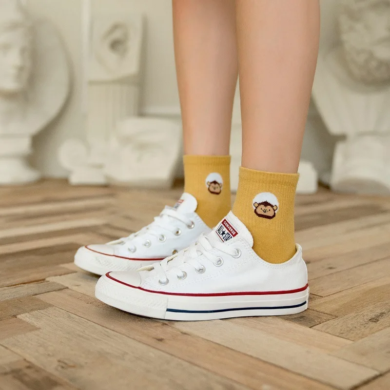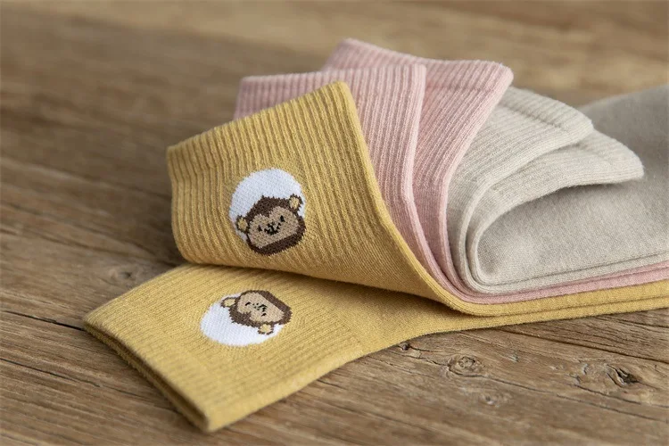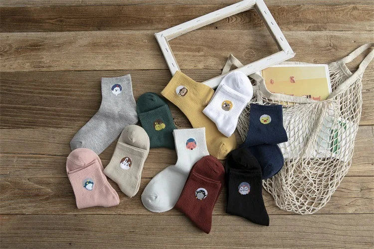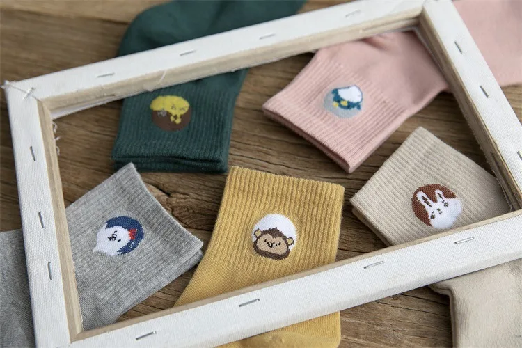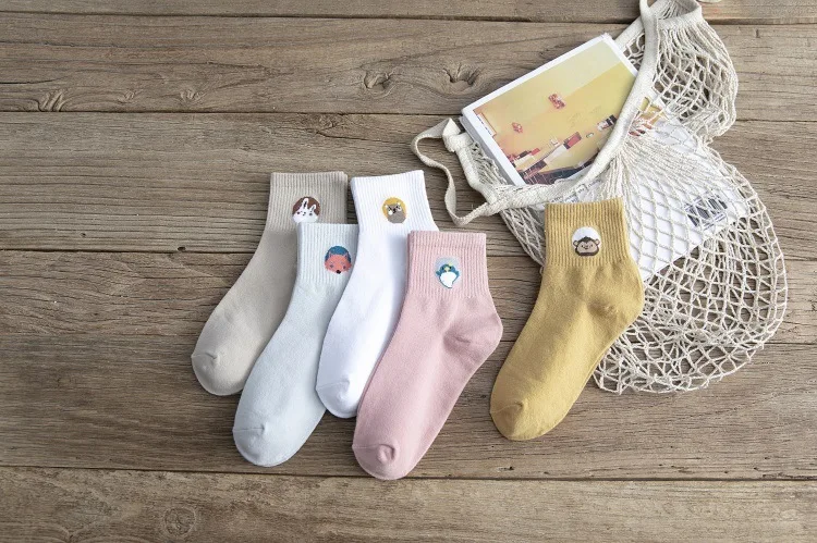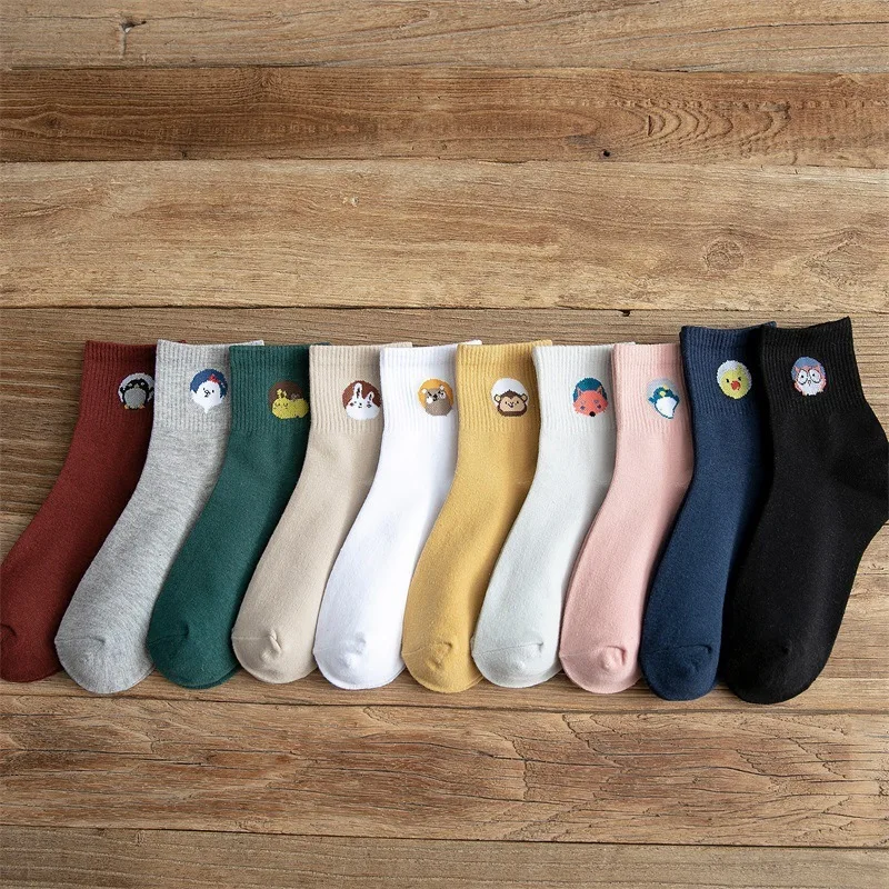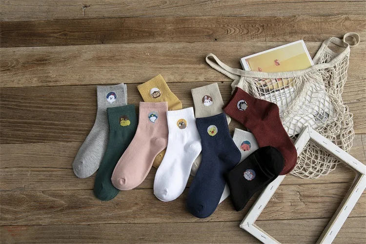 Носки женские хлопковые однотонные, с рисунком животных, дышащие, удобные
