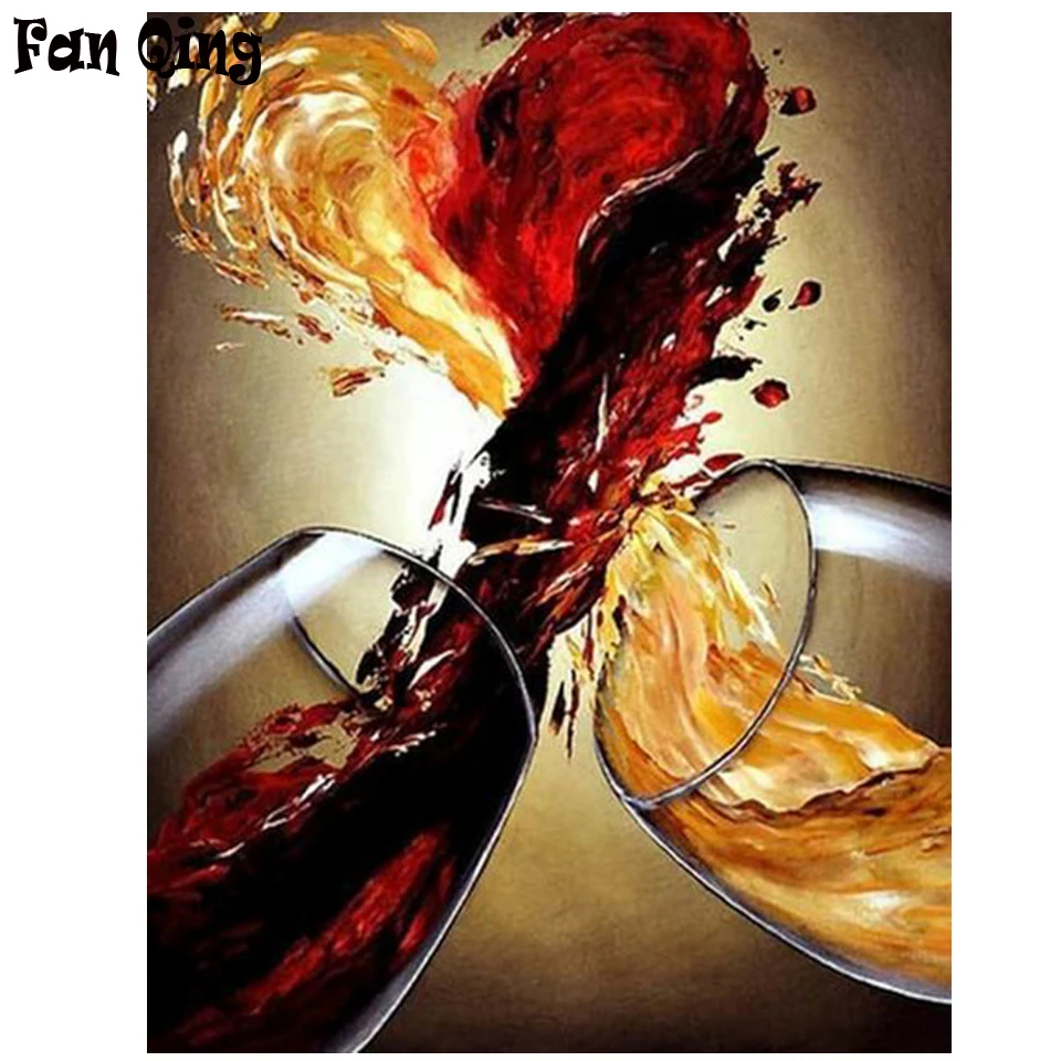 Алмазная живопись 5D сделай сам, Винные бокалы красного и белого вина, мозаика, вышивка крестиком, квадратныекруглые алмазные картины для домашнего декора