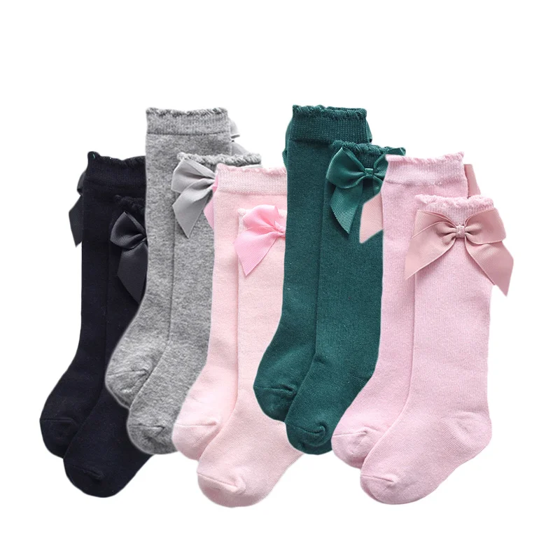Гольфы детские из детские носки для девочек хлопка, с большим бантом, на осеньзиму