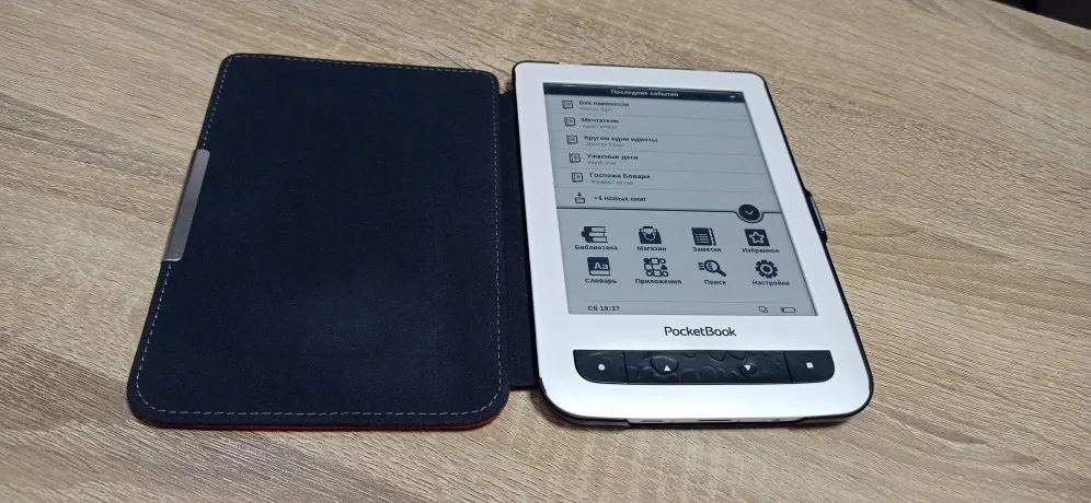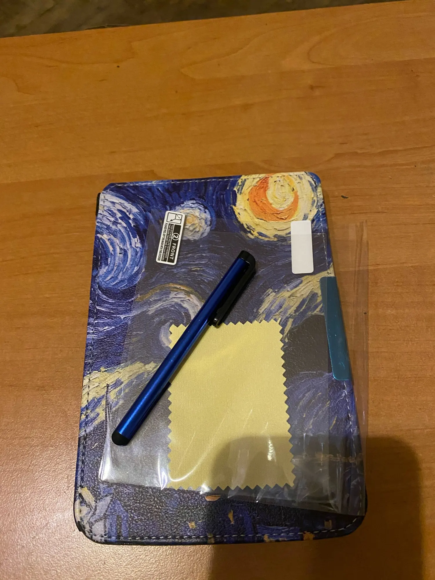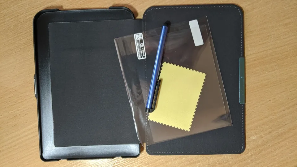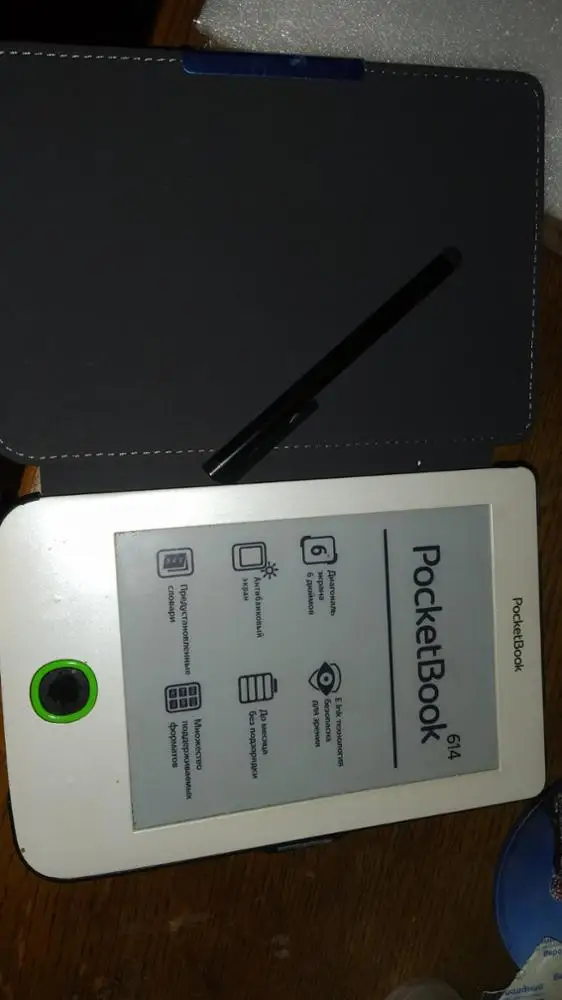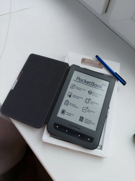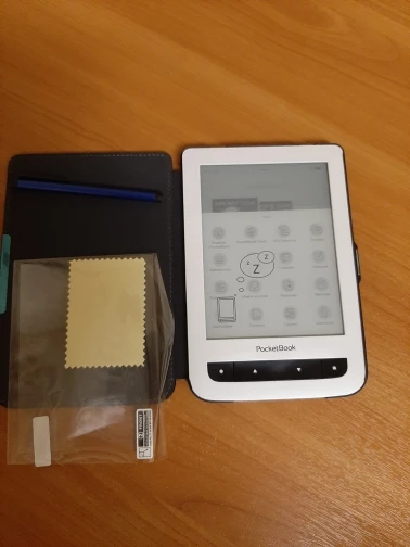 Чехол кривой. Верхняя его часть тоньше, чем нижняя. Из-за этого книга не входит в пазы. Это не критично, она в целом не вываливается, но все равно держится там не слишком надёжно. Брала на Pocketbook 641, по размеру подошёл. В комплекте шёл стилус (не очень понятно, зачем) и плёнка на экран.