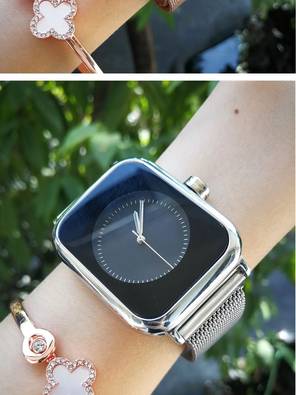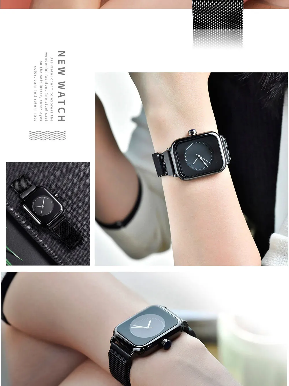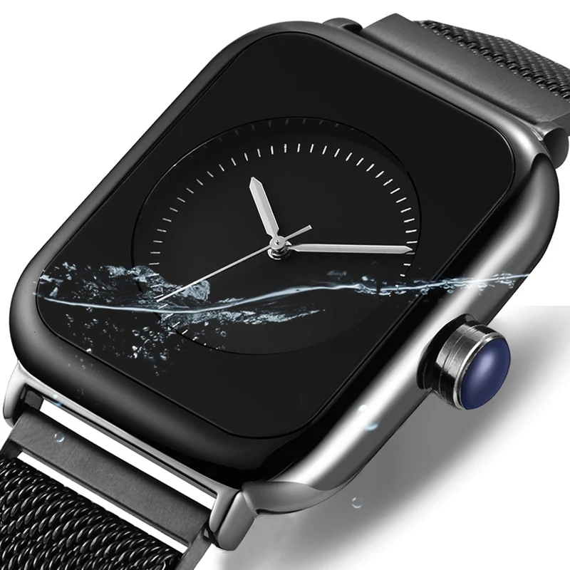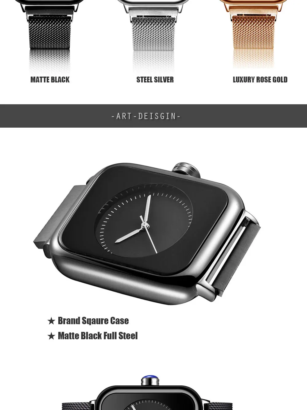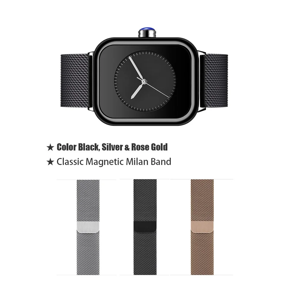 Часы наручные Миланская петля мужскиеженские, брендовые водонепроницаемые стальные, матовые, черные, розовые, золотые, серебристые