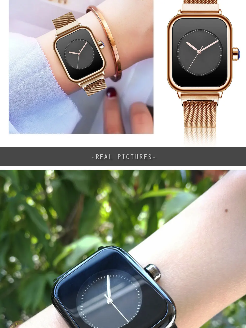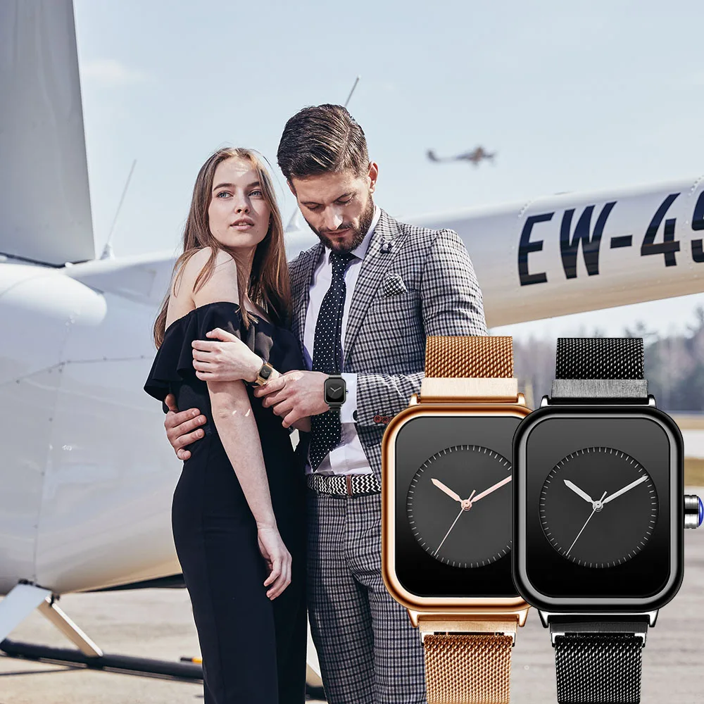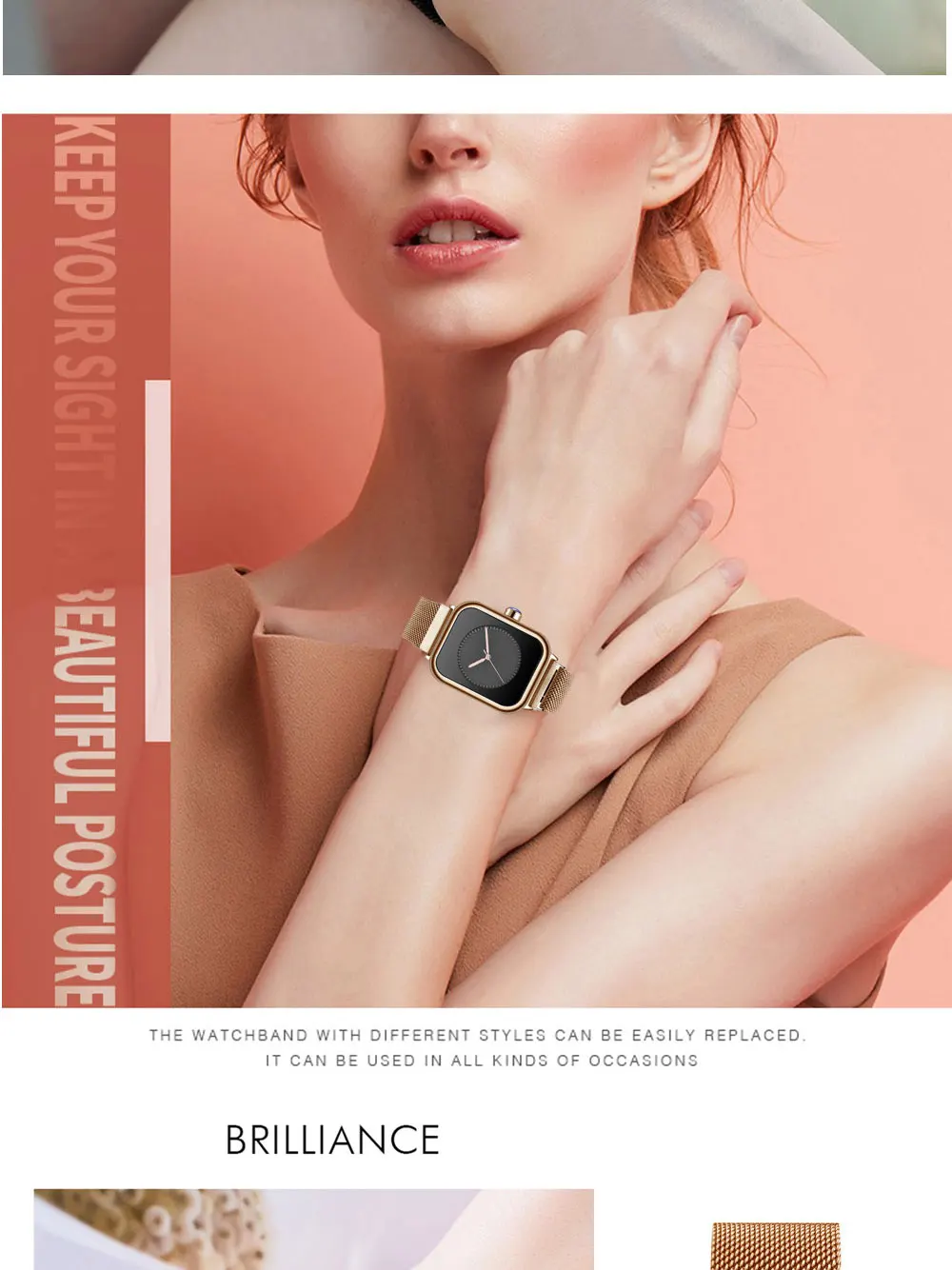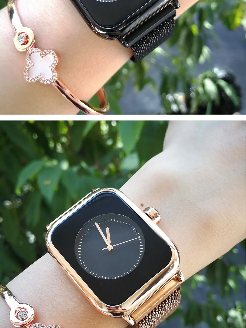 Часы наручные Миланская петля мужскиеженские, брендовые водонепроницаемые стальные, матовые, черные, розовые, золотые, серебристые