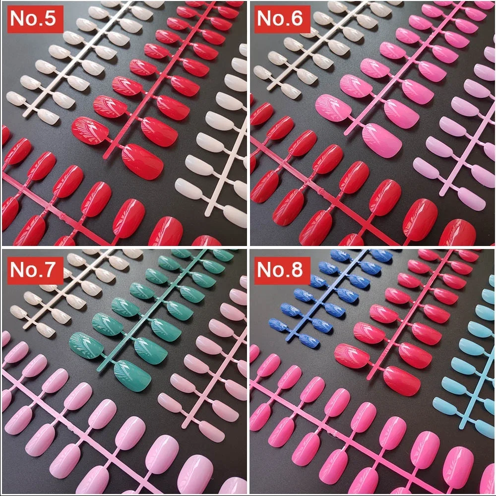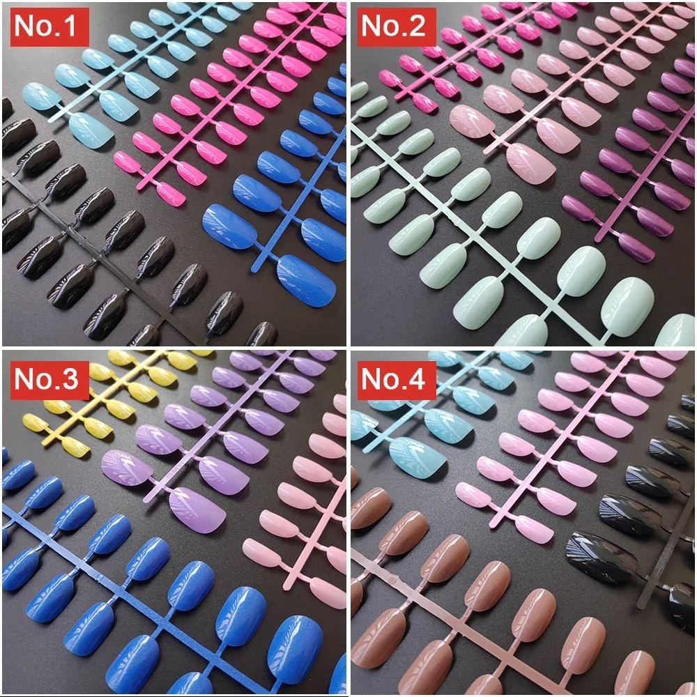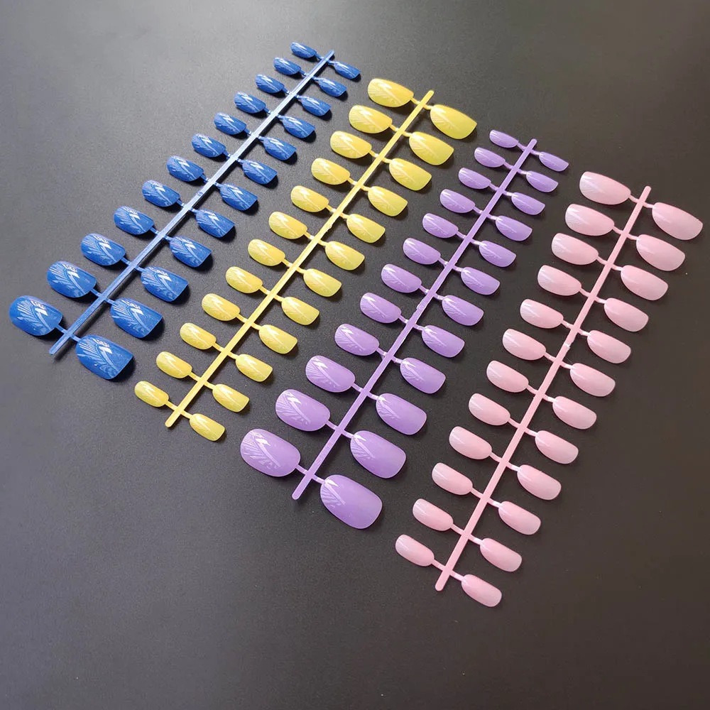 Поставляется с клейкими лентами для ногтей, 4 комплекта, круглые короткие накладные ногти разных цветов, 24 шт.компл., 10 размеров, полное покрытие, накладные ногти сделай сам