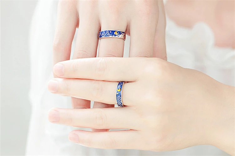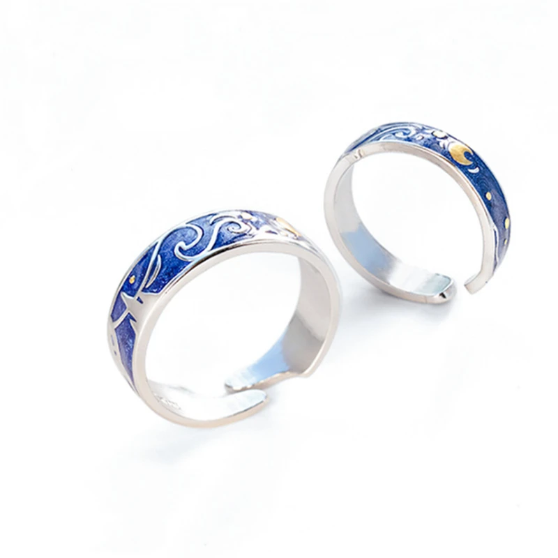 Антиаллергенные парные кольца Ван Гога с Луной и звёздной ночью, ювелирные изделия, настоящие парные кольца для женщин и мужчин, лучший подарок для влюбленных