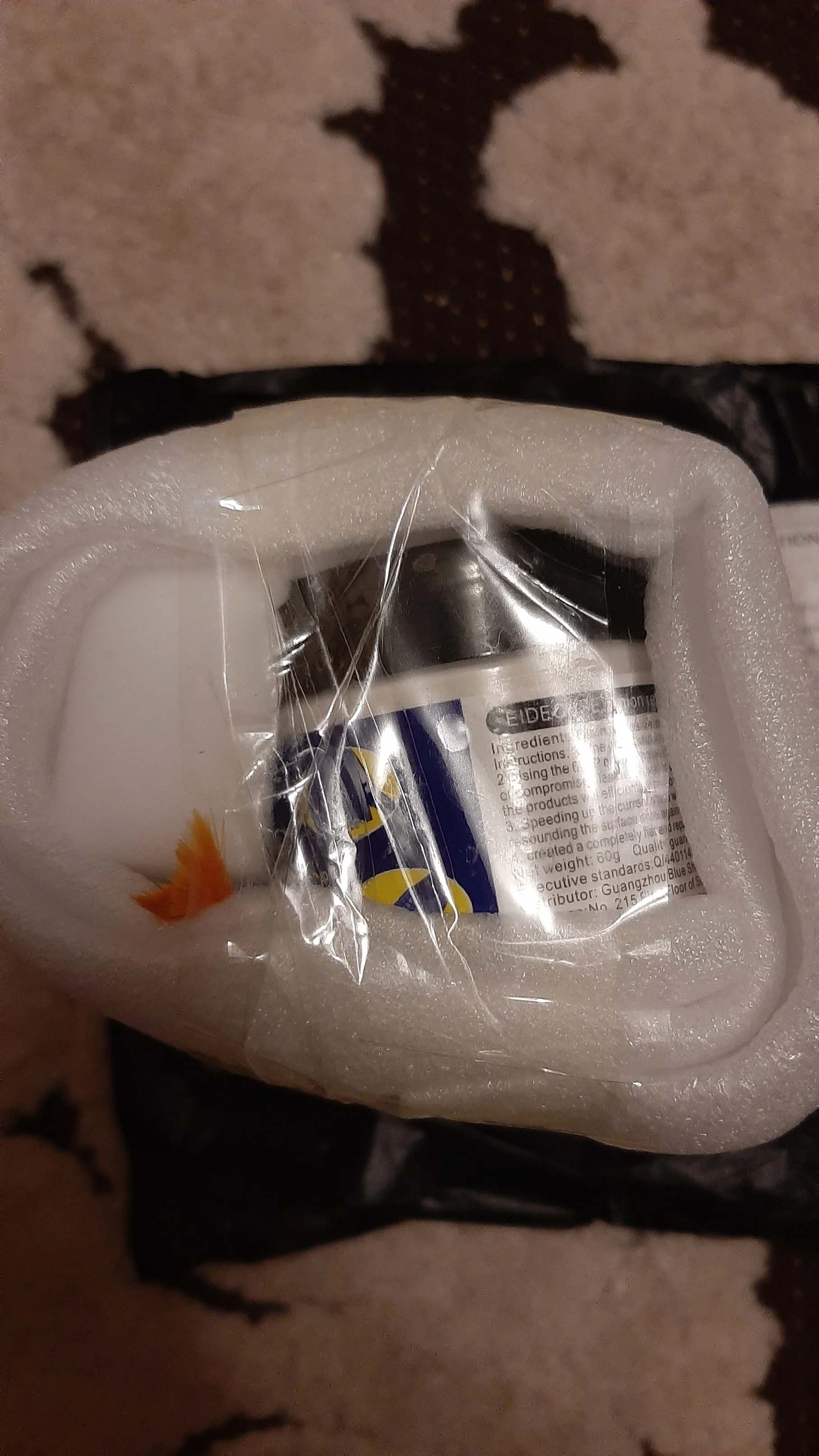 Время доставки до Брянска 20 дней, трек отслеживался. Набор упакован в вспененный пластик. Пластиковые баночки не повреждены. В комплект входит – баночка с краской, баночка выравнивающей пасты, кисточка, одноразовые перчатки, кусок поролона. Инструкция на краску, находится под основной наклейкой. Набор будет опробован позже.