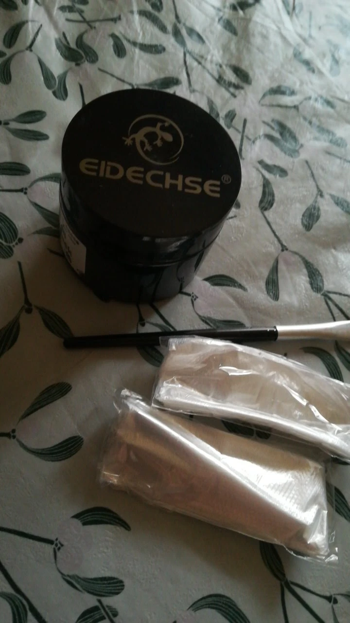 Товар пришел в комплекте с кисточкой, губкой и перчатками. Цвет соответствует картинке. По консистенции выглядит идеально. Пока не пробовала, но думаю, что все будет отлично!
