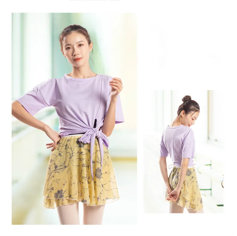 Женская балетная юбка, цельная шифоновая балетная юбка с цветочным принтом для занятий йогой, балетное танцевальное платье с цветочным принтом для девушек
