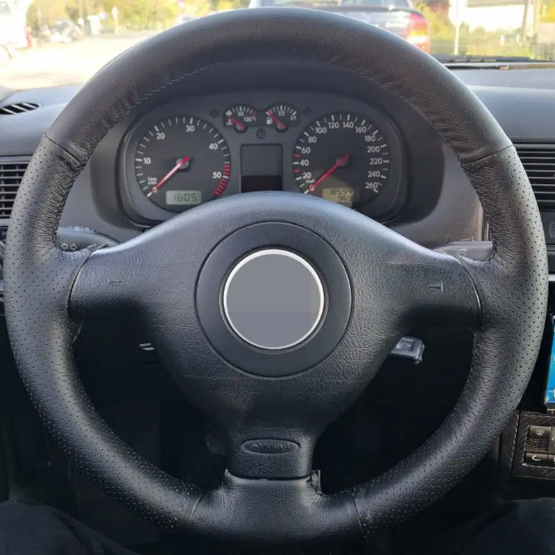 Сшитая вручную Черная мягкая искусственная кожа чехол на руль для A...