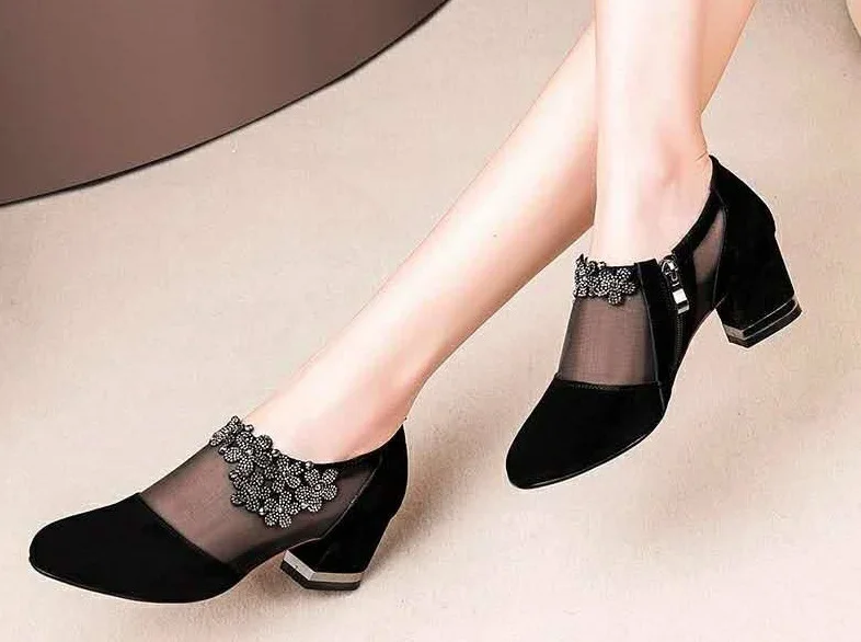 Женские сетчатые босоножки с кристаллами, на молнии, с кружевом, на...