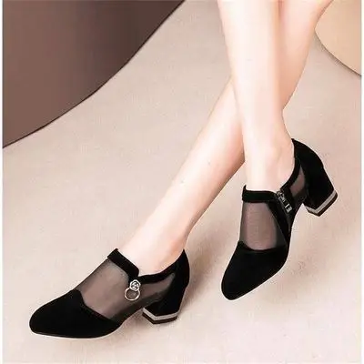 Летние женские туфли на высоком каблуке, сетчатые дышащие туфли-лод...