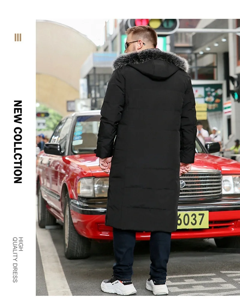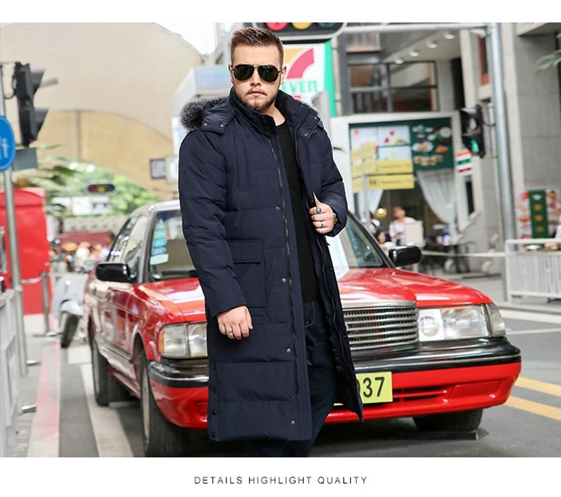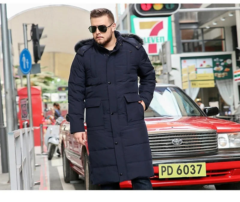 Новая мужская зимняя куртка-пуховик выше колена большого размера, длинное пальто с меховым воротником