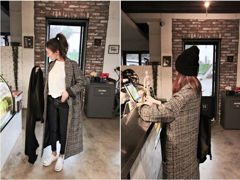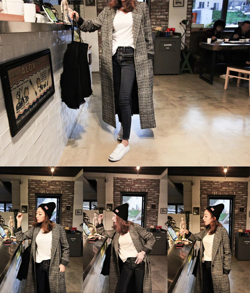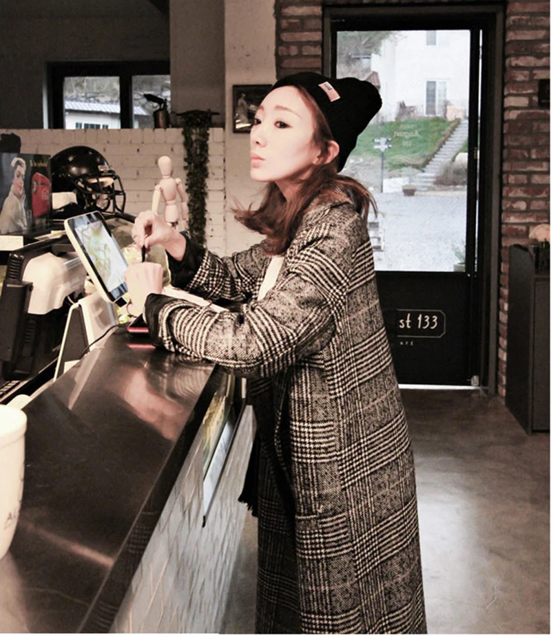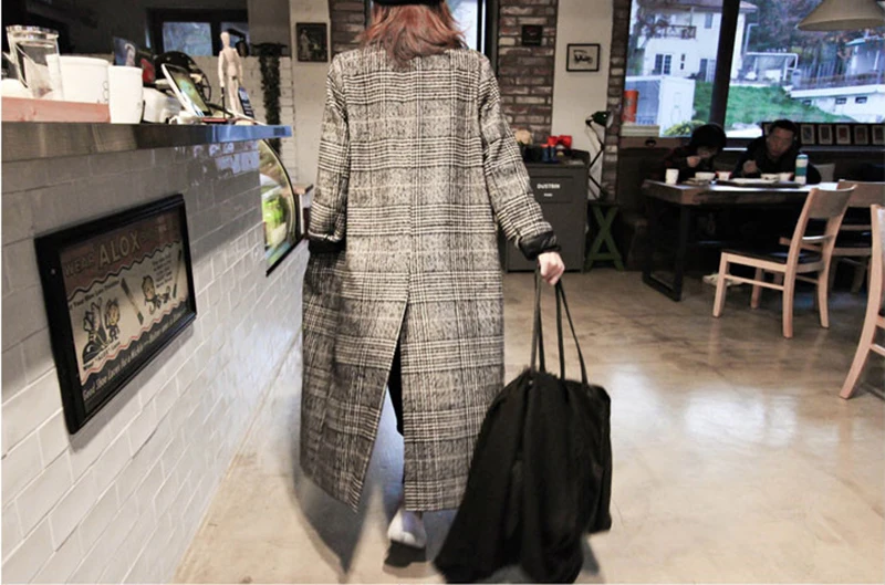 Осенне-зимний кашемировый Тренч, женское длинное повседневное клетч...