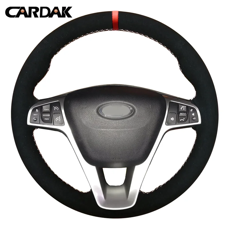 Чехлы рулевого колеса автомобиля CARDAK DIY из черной кожи и замши ...