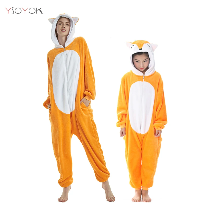 Пижамный комплект для мальчиков и девочек, кигуруми, пижамы с единорогом для женщин, комбинезоны, пижамы для взрослых с животными, лисицей, тигром, пандой, детские пижамы для косплея