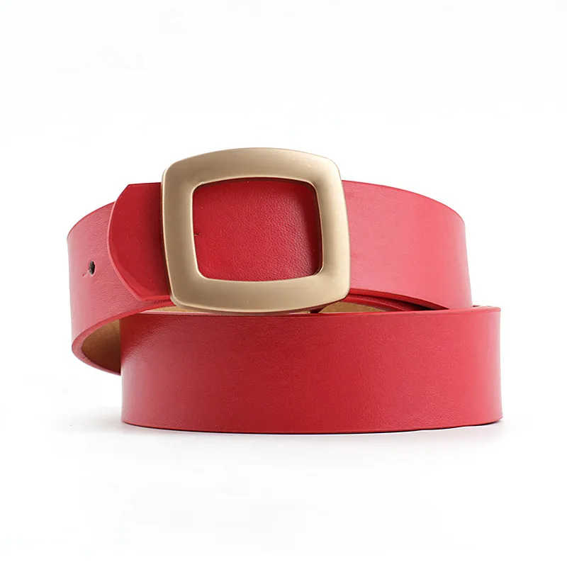 Ремень женский кожаный с квадратной металлической пряжкой, черный, белый, розовый, 2020