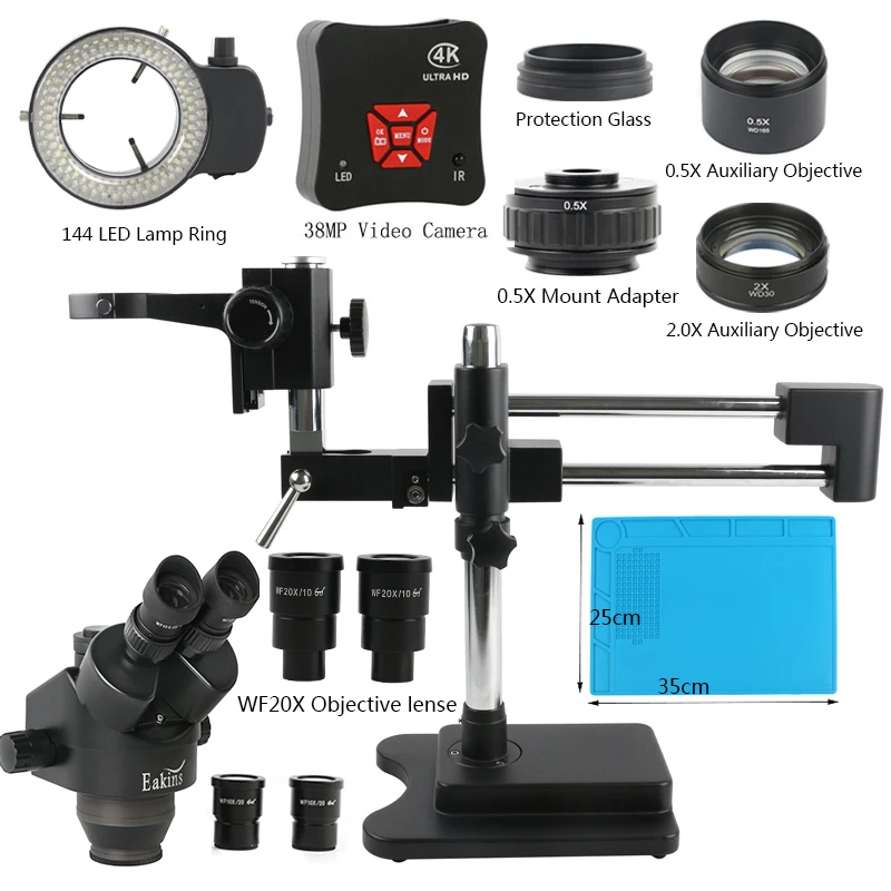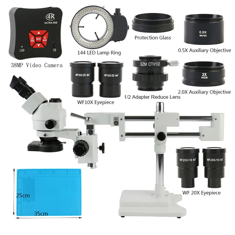 Мультифокусный Тринокулярный стереомикроскоп с двойным зумом 3,5x-90X 180X 4K 38MP HDMI камера для обнаружения ювелирных изделий нефрита