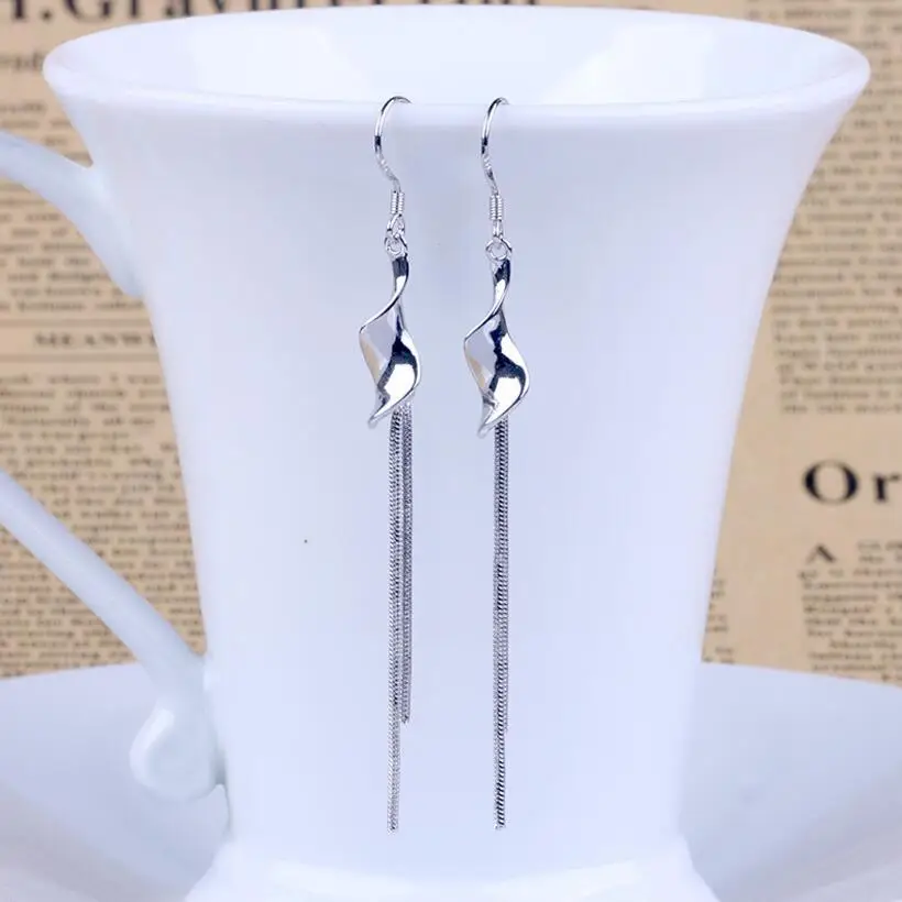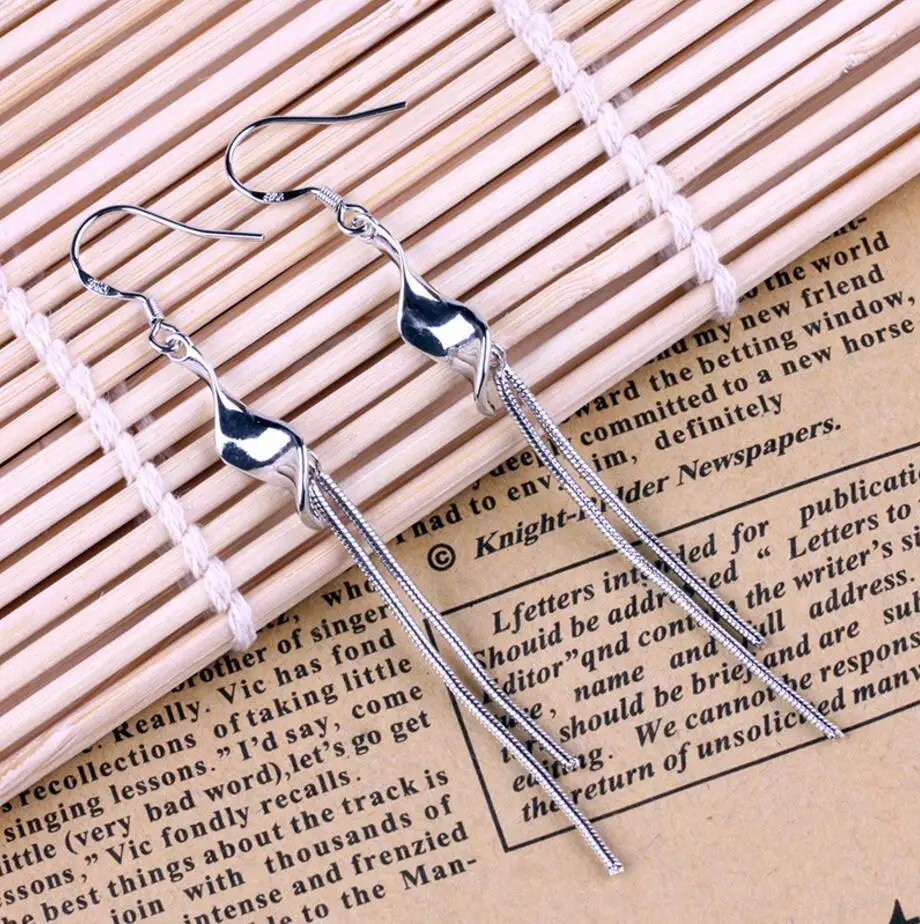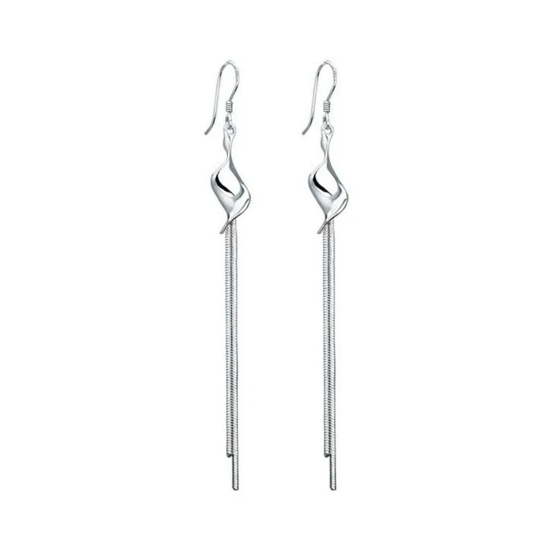 Серьги-подвески женские серебряные с висячими длинными кисточками