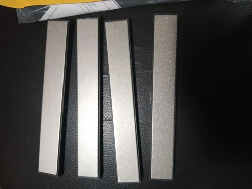 к пластине с алмазным напылением вопросов нет. Подложка гнется (после установки в держатель для заточки ножей, немного выгнулась). да и к тому же, приклеена пластина на термоклей. Лучше аккуратно снять пластину, убрать лишний клей и приклеить на эпоксидку к фанере.