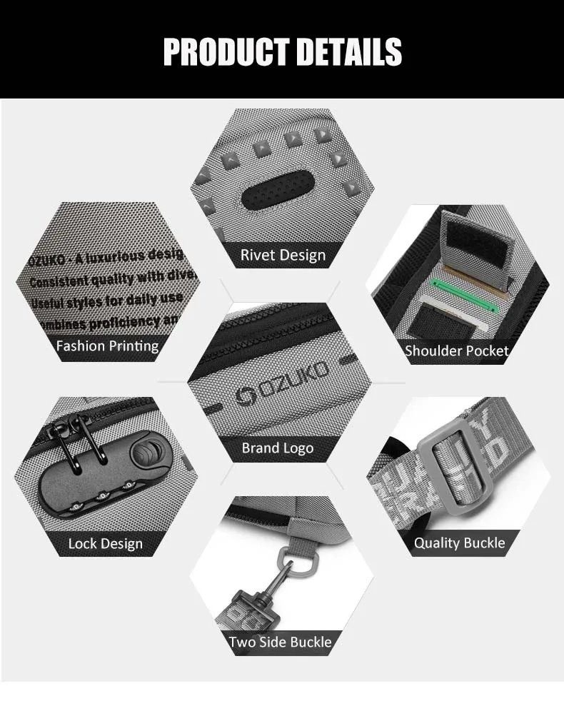 Сумка-мессенджер OZUKO Мужская, водоотталкивающая, с USB-зарядкой