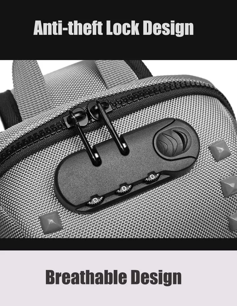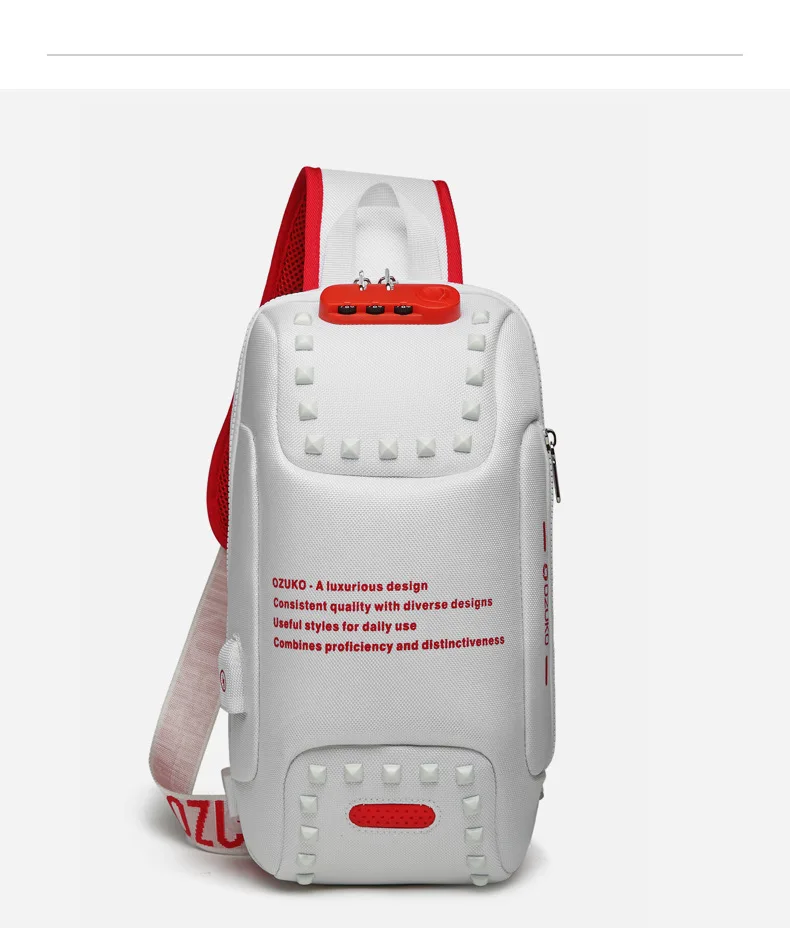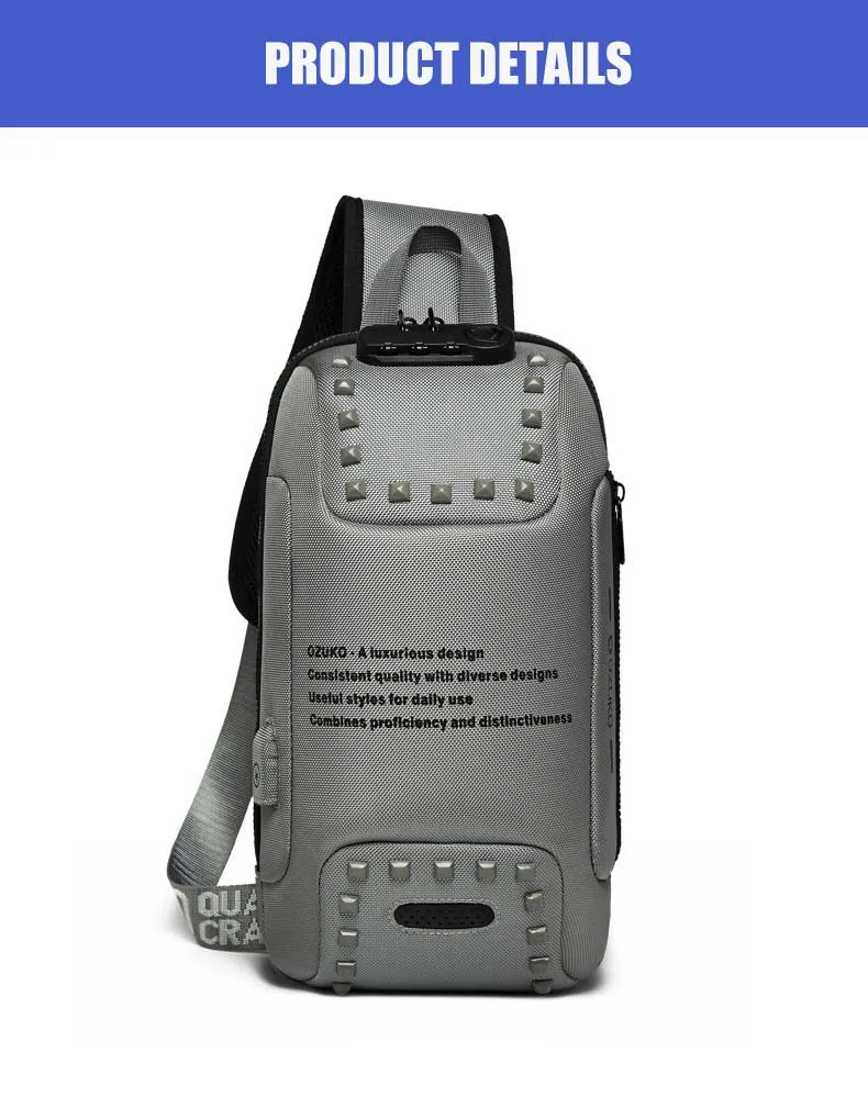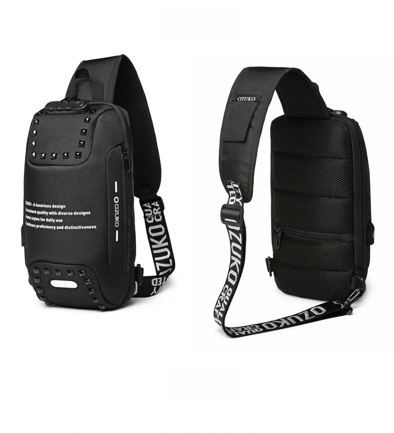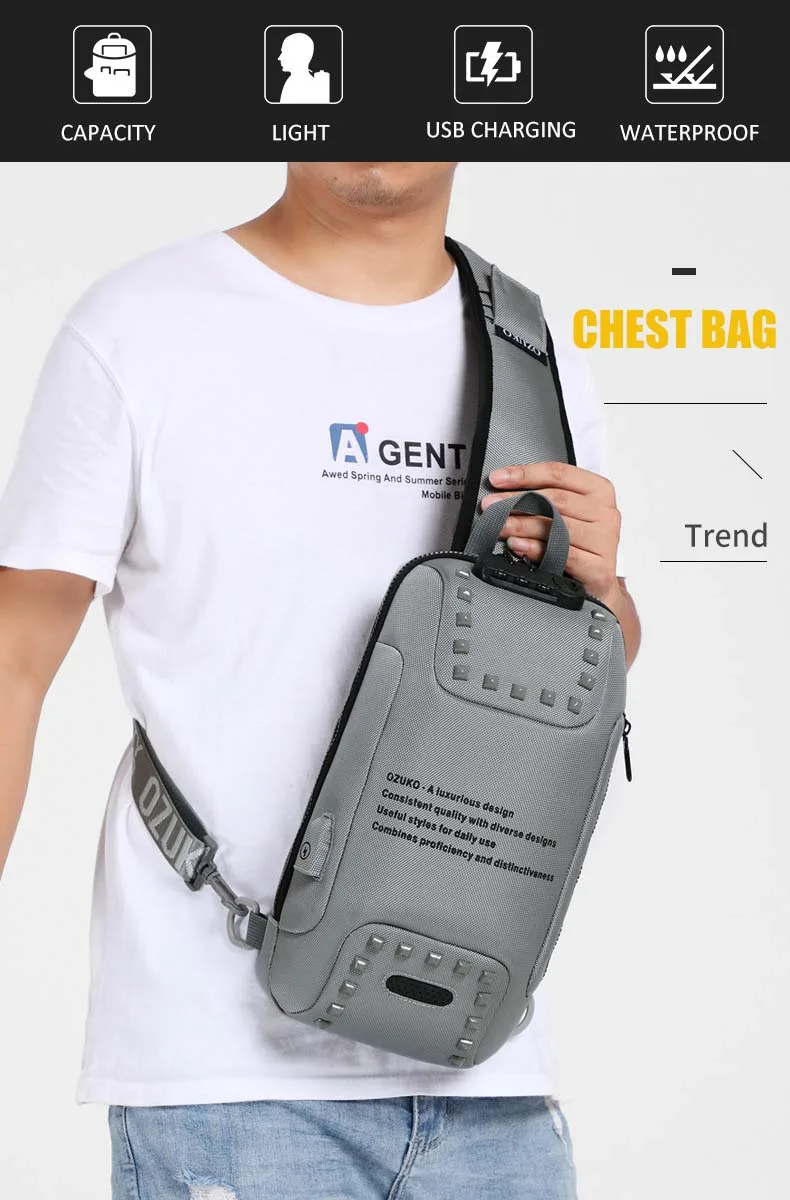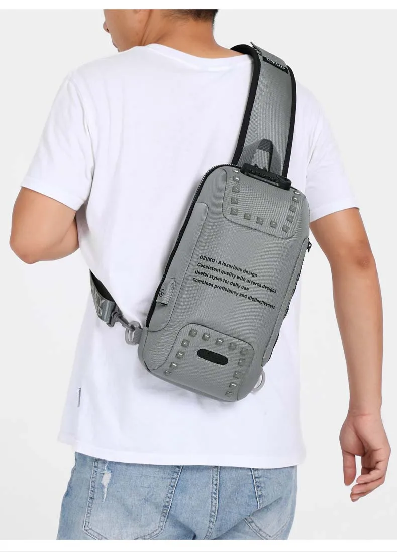 Сумка на плечо OZUKO мужская с защитой от кражи и заклепками, водон...