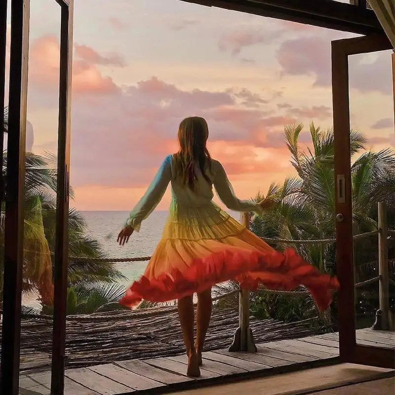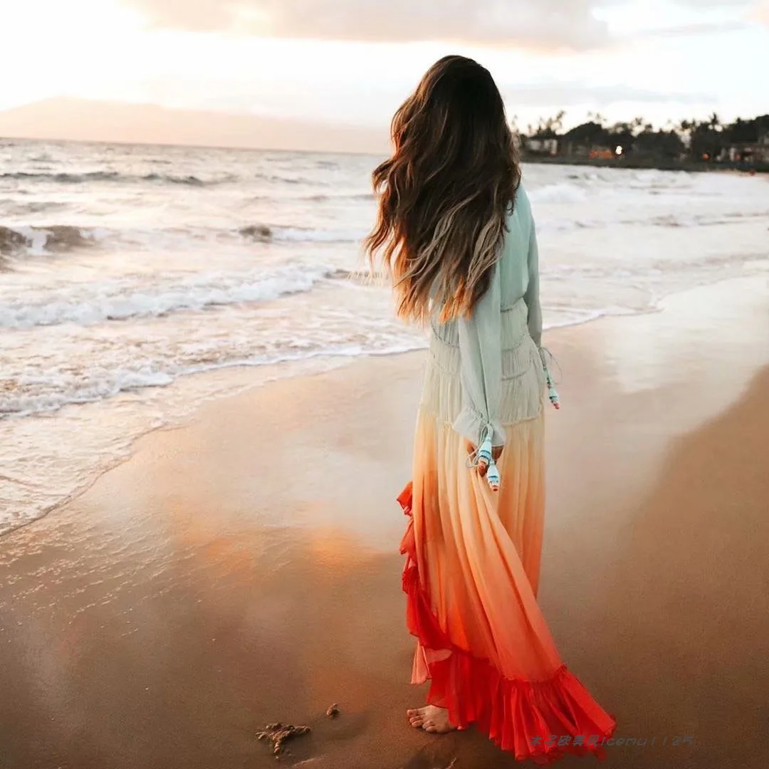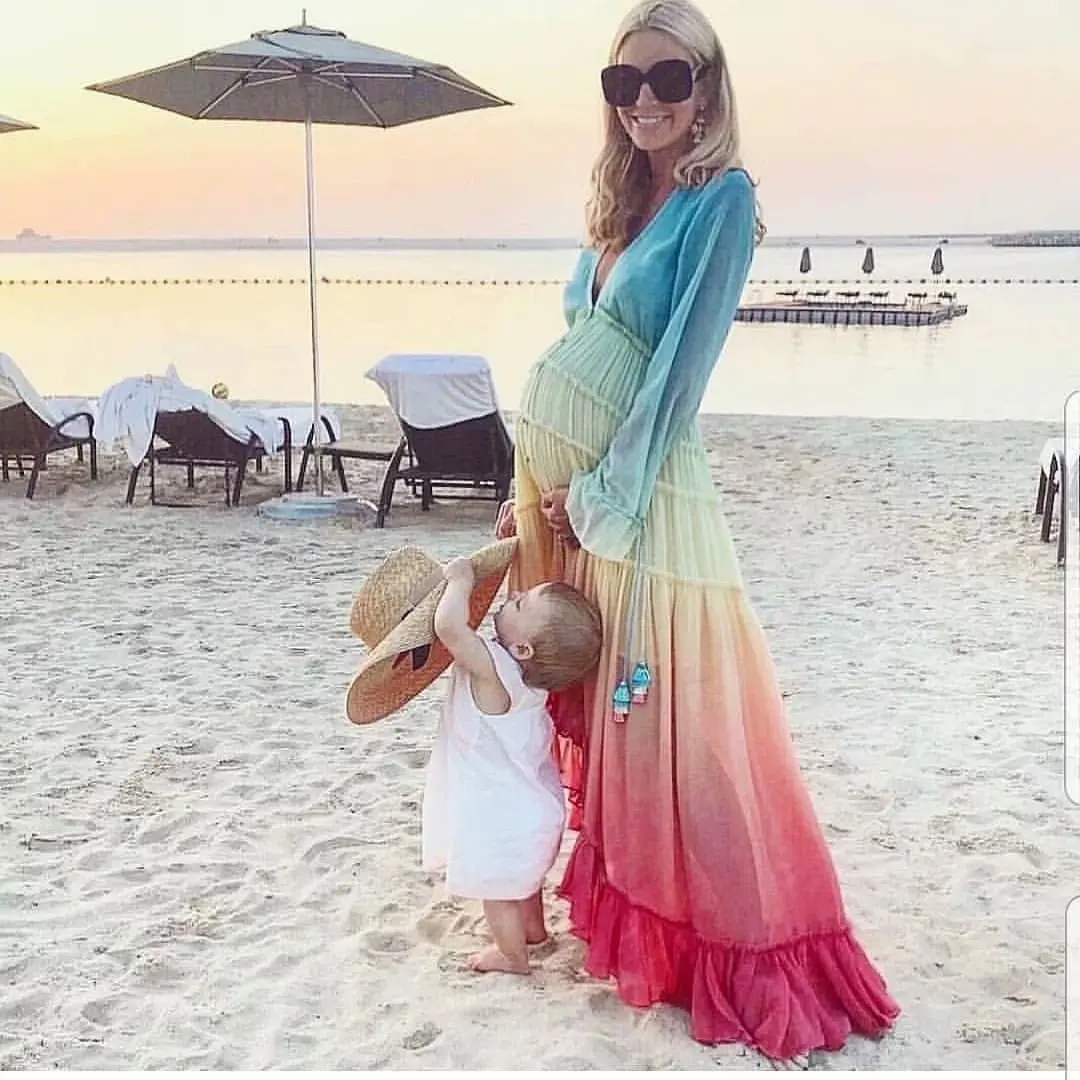 Женское шифоновое платье TEELYNN, с длинным рукавом, с глубоким v-образным вырезом, с радужными оборками, 2020, для вечеринок, богемные платья Пляжные