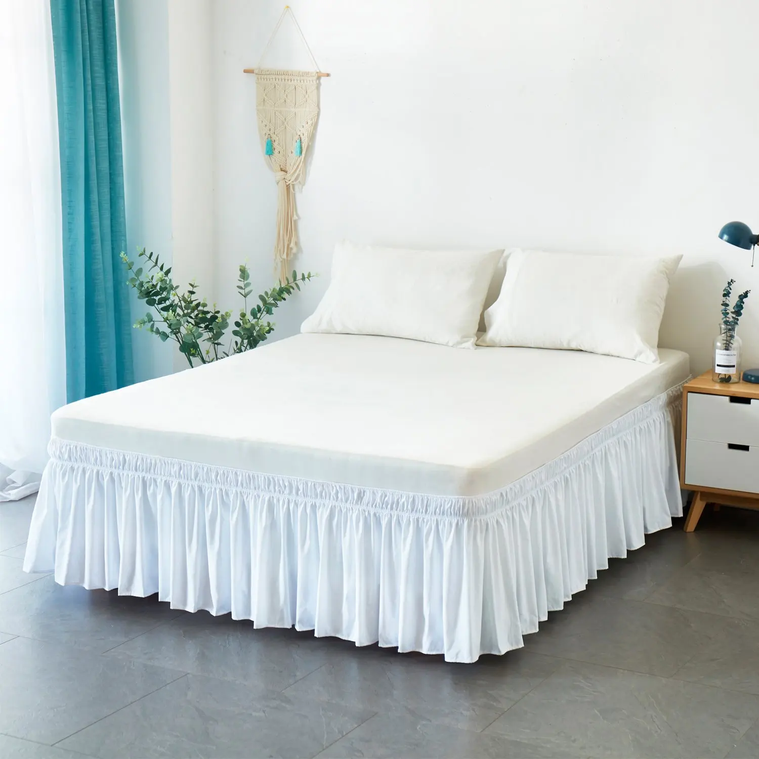 Юбка для кровати для отеля, белая рубашка для кровати без поверхности, эластичная лента, одинарная королева, двуспальная, легко надевается/легко снимается, юбка для кровати