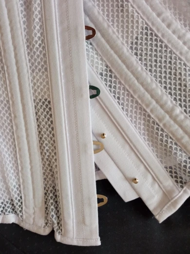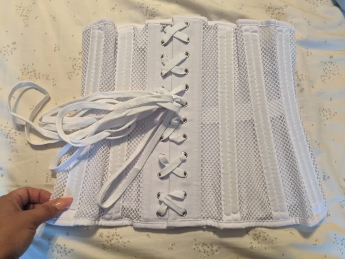 Корсет хороший, ткань плотная, стальные спицы держат отлично. Сетка прочная и мягкая, телу не будет больно, шнуровка очень длинная из обычной ткани, как на кедах. На свой вес 75 кг и размер 50-52, взяла 2XL, считаю так правильно будет. С большего размера нельзя будет затянуться. Вещь отличная.