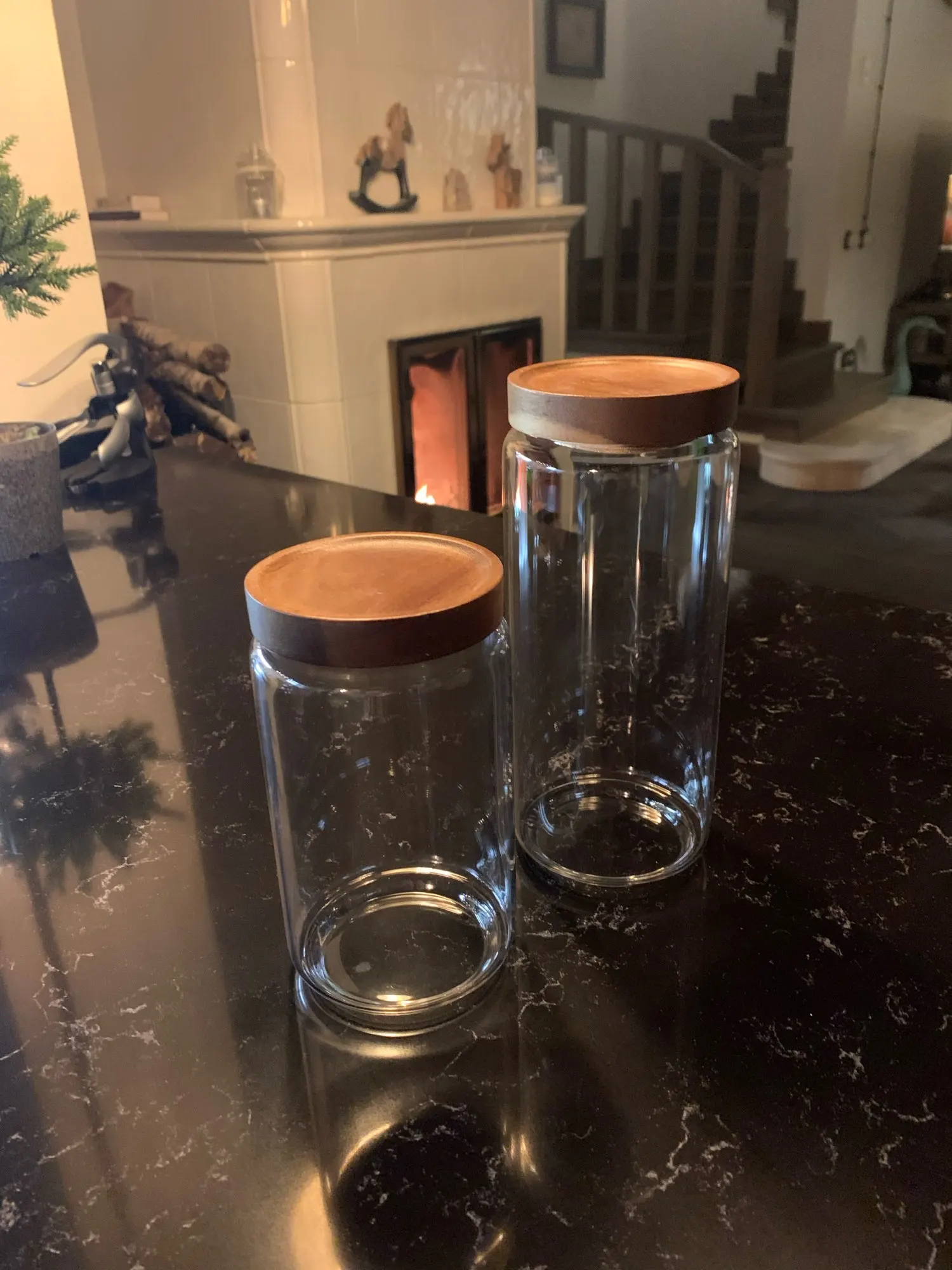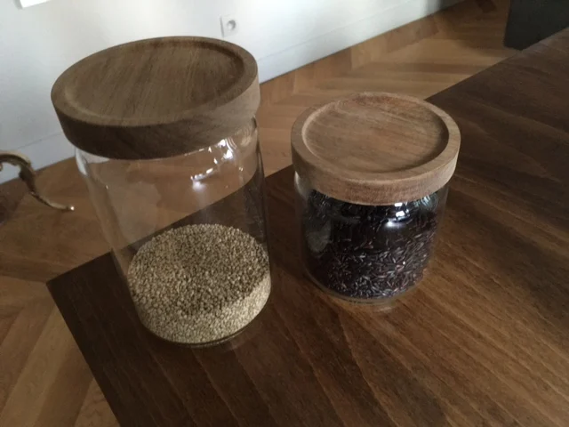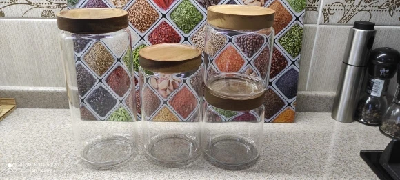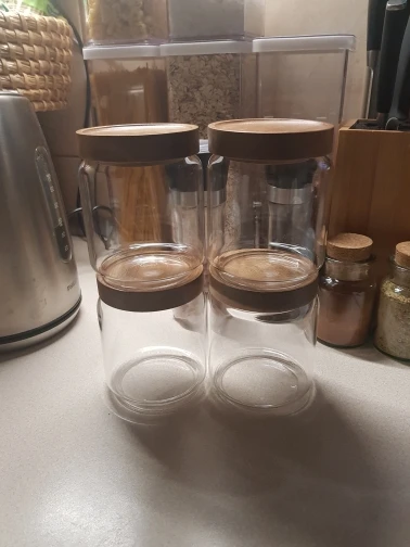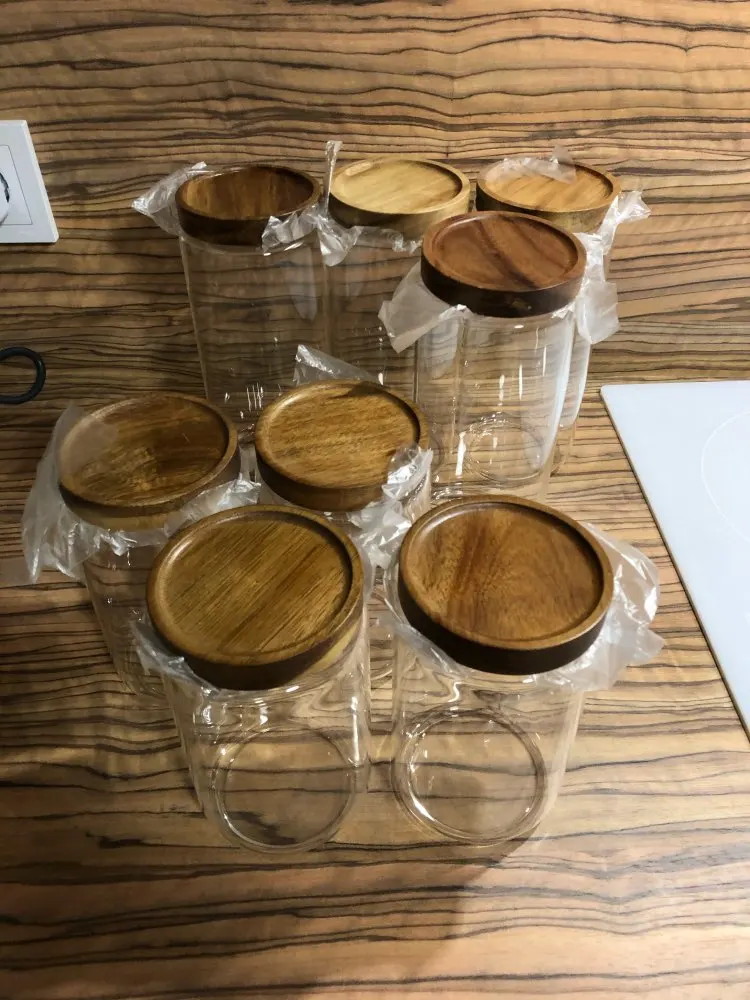 Очень доволен моей покупкой! Банки красивые, тонкие и выглядят солидно. Крышка идеально герметична. Цвет дерева очень приятный. Упаковка была доставлена очень хорошо упакована с большой защитой. Я очень доволен, все еще был запах (уплотнение крышки), но остался с двумя стирками. Я буду рекомендовать другие размеры для завершения коллекции!