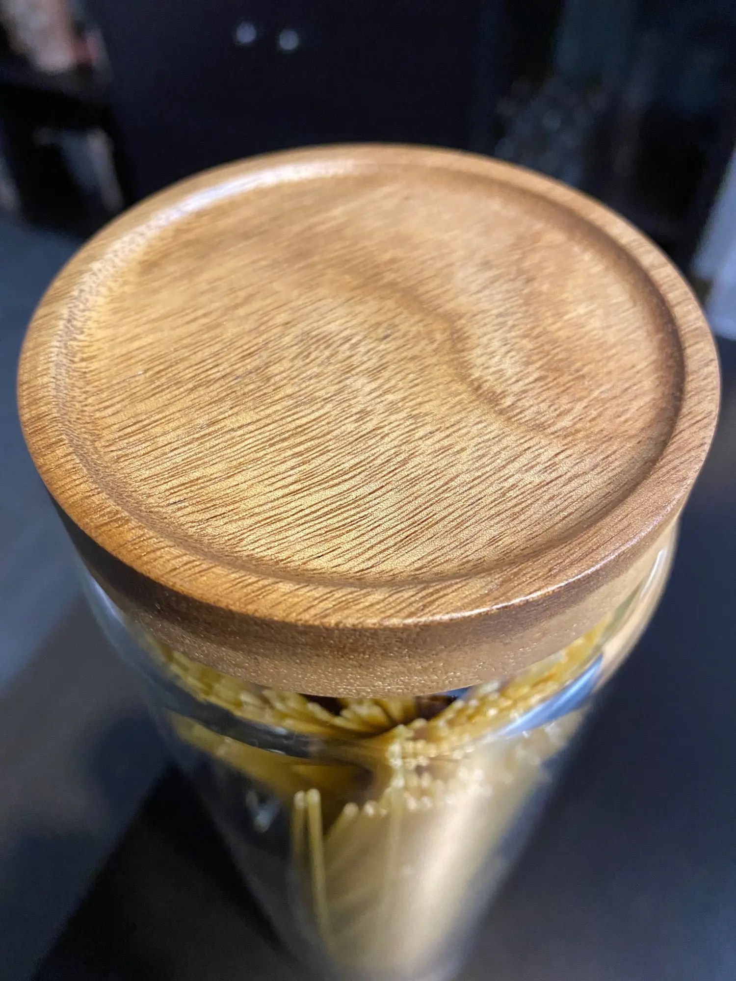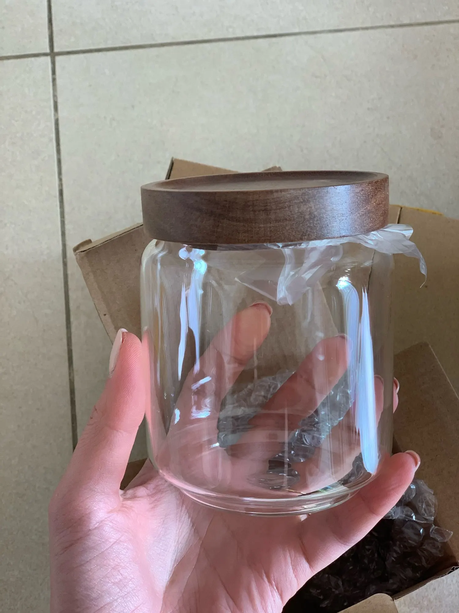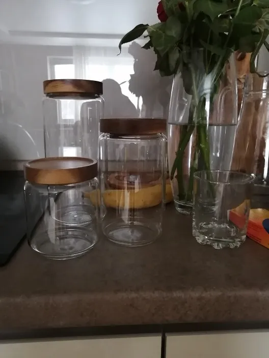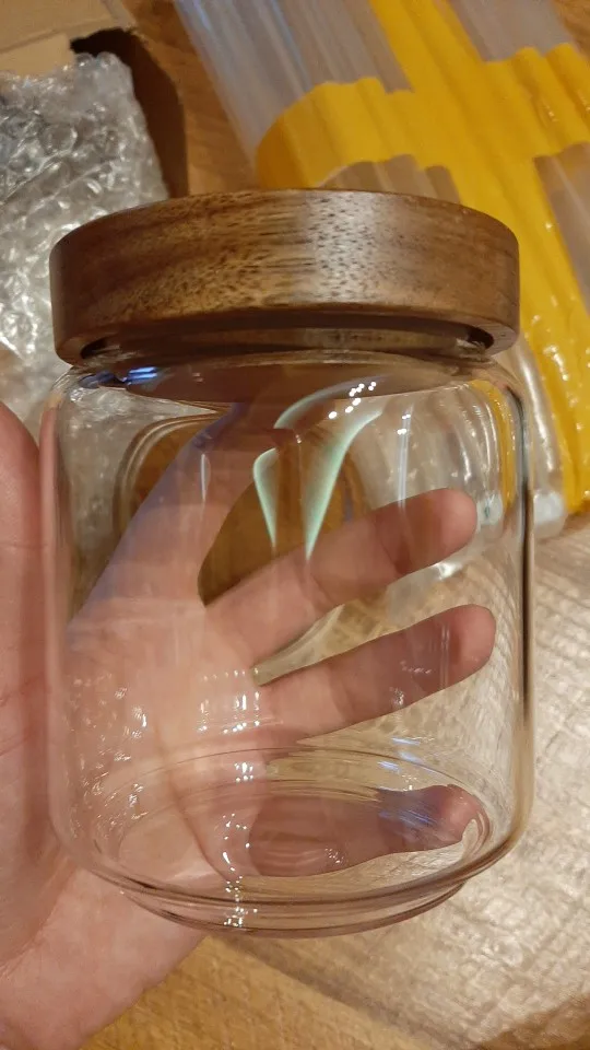 баночка пришла) дорогая, но классная! герметичная, резинки крутые. запакована была идеально, в коробку и в воздушную упаковку. Дерево смотрится дорого, аж слегка переливается, на нем правда видно следы круговой обработки, но не страшно) стекло без повреждений, может позже возьму еще одну побольше. Мужу для кофе - идеально, доволен)