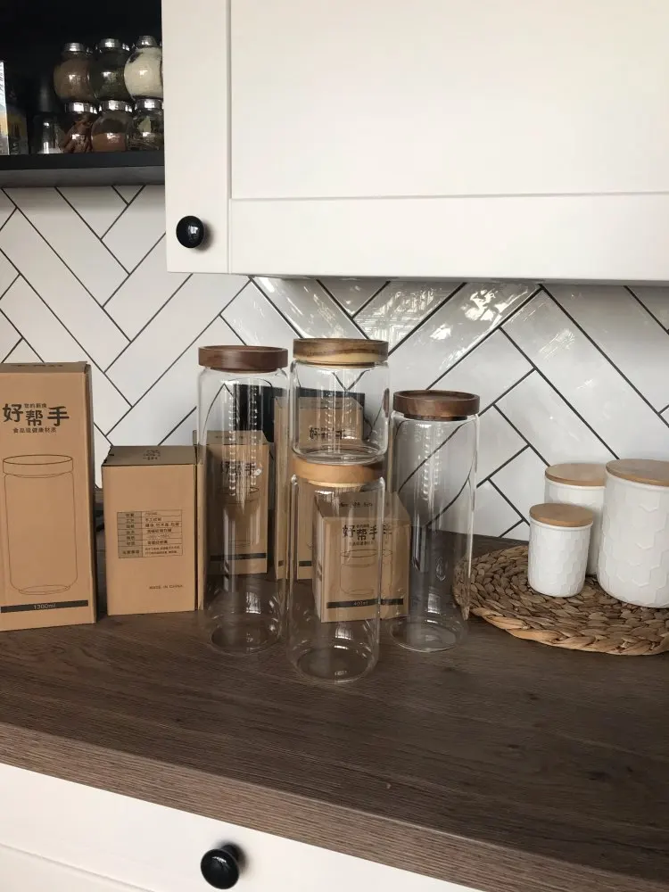 Деревянная крышка, стандартные кухонные бутылки для хранения, банка, Герметичный пищевой контейнер, чай, кофе, зерна, зерна, конфеты, банки, Органайзер ореховые банки, чайные банки, конфетные банки, банки спагетти