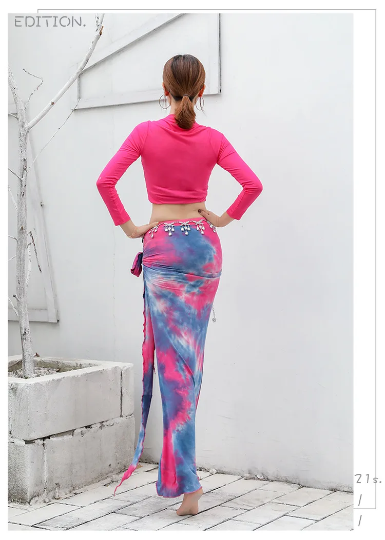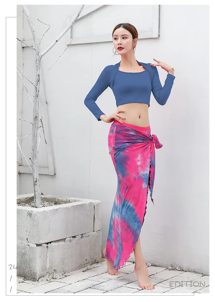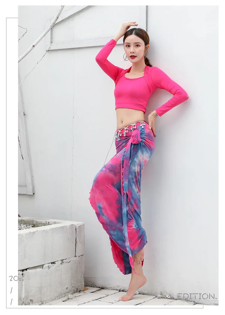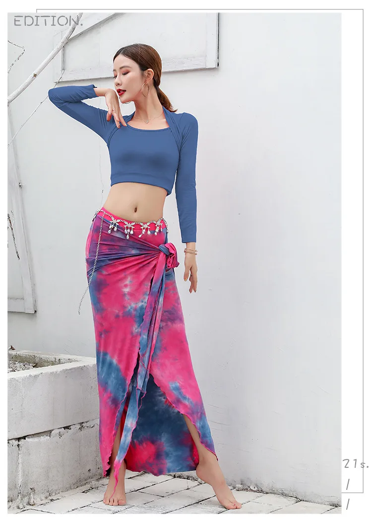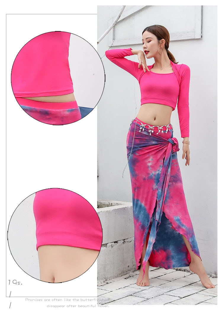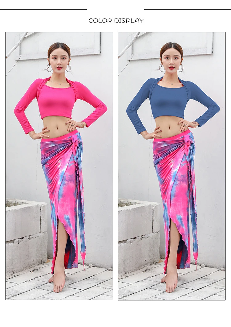 Новинка 2020, Женская Одежда для танцев, одежда для танца живота, модал, тренировочный костюм из двух предметов, топ + длинное платье с юбка для танца живота