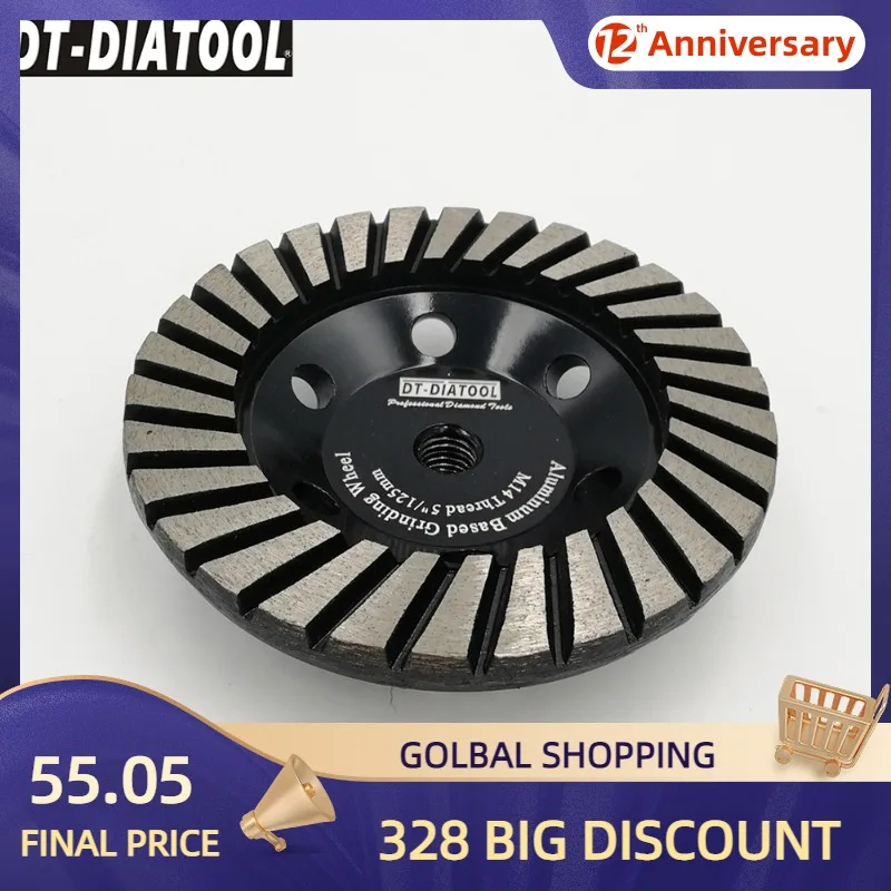 DT-DIATOOL 1 шт. M14 Dia 125 мм5 "зернистость #100 Алюминий основе шлифовальный алмазный чашечный шлифовальный круг для Гранит Мрамор Бетон шлифовальный диск