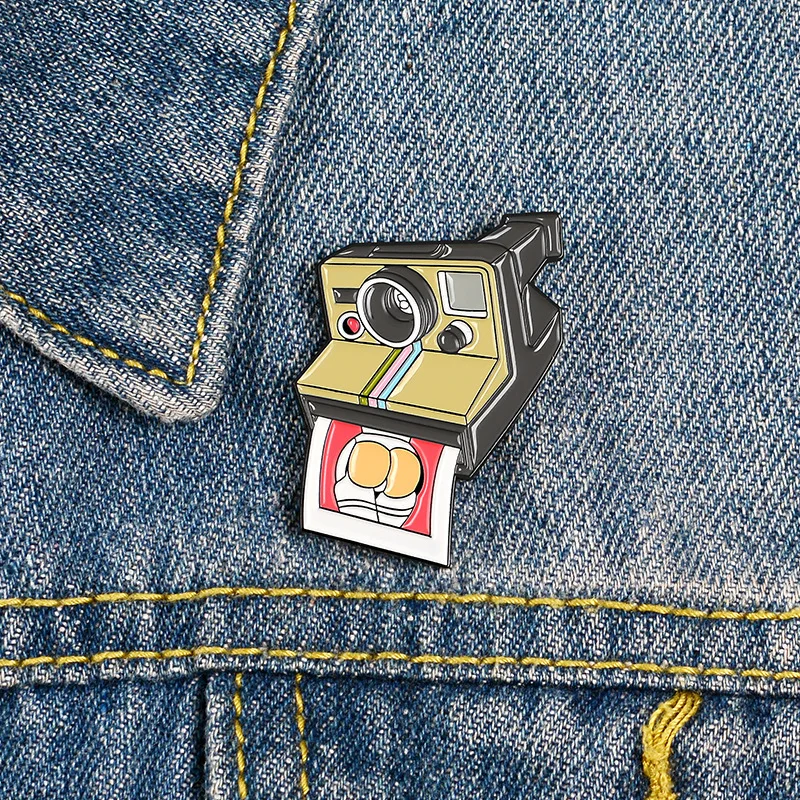 Винтажная эмалированная булавка для камеры сексуальный значок с фот...