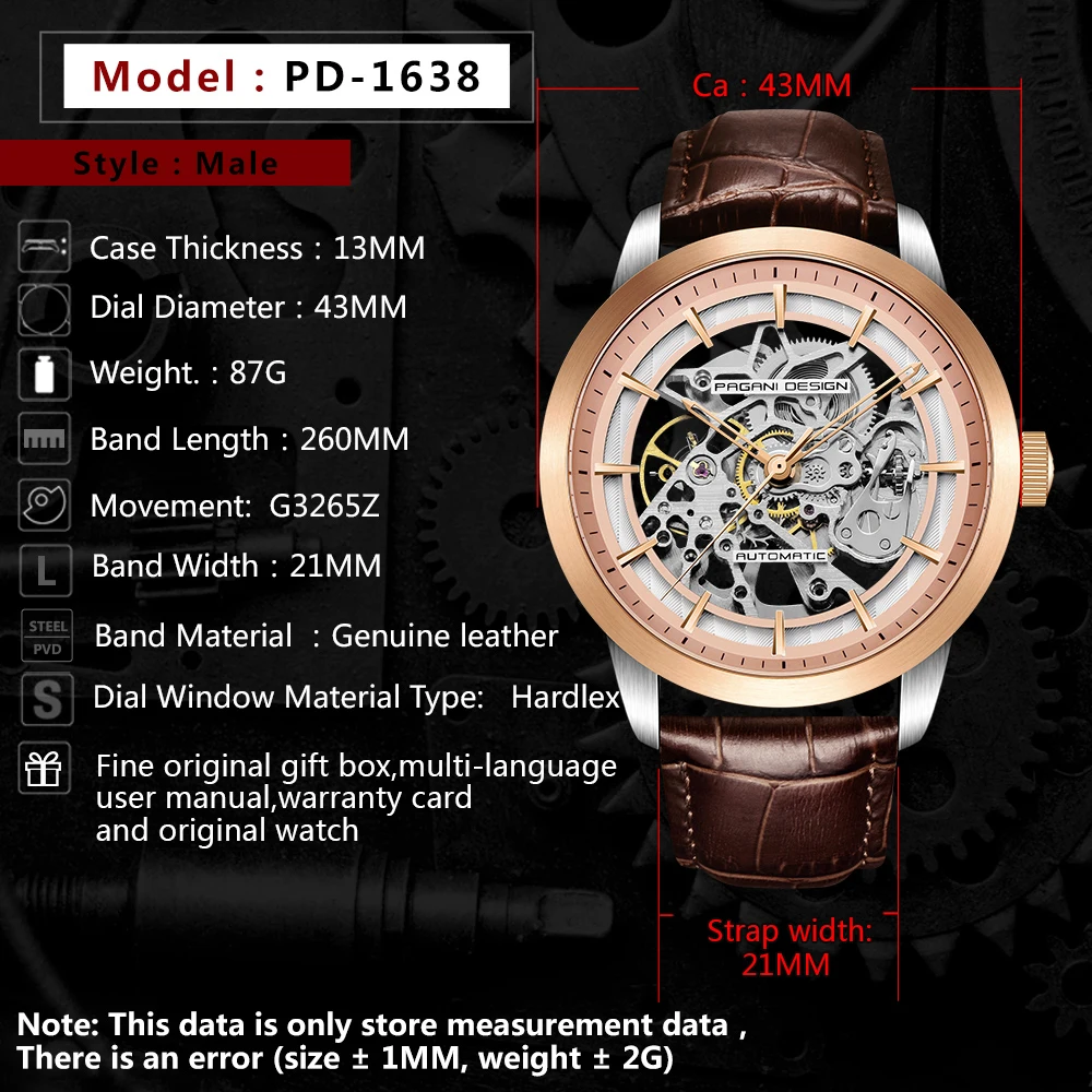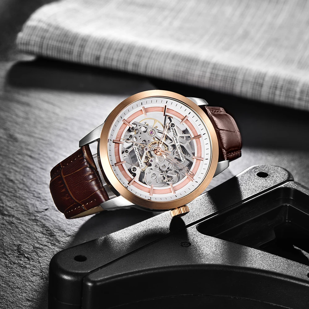 Часы PAGANI мужские, автоматические, водонепроницаемые, из натуральной кожи