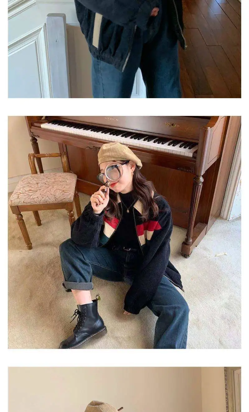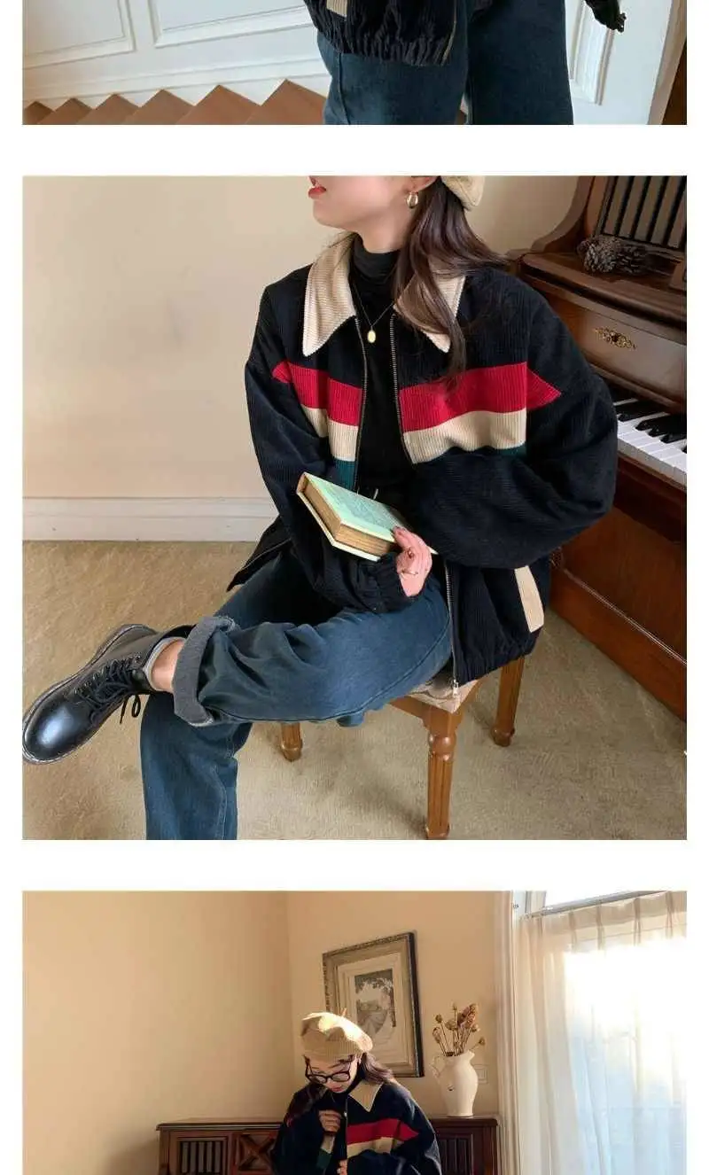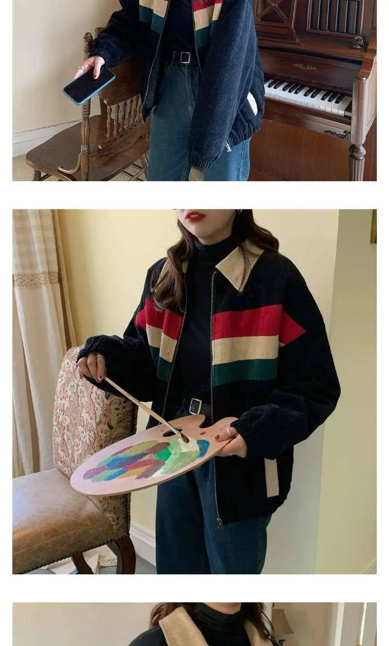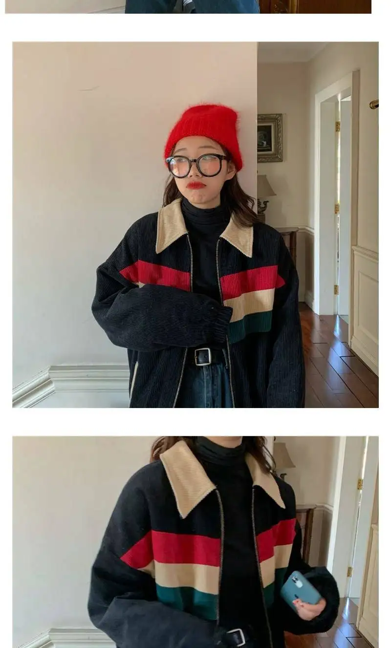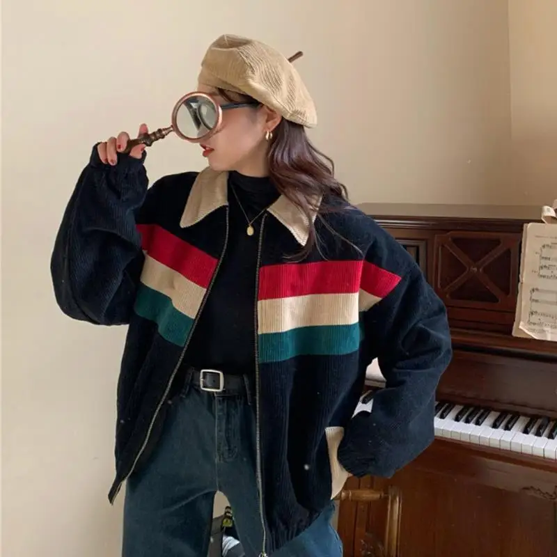 Куртка женская Вельветовая с отложным воротником, в стиле хип-хоп, свободная, в стиле пэчворк, осень 2020