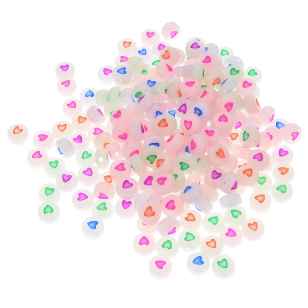 200 шт светящиеся разноцветные бусины в форме сердца, акриловые бус...