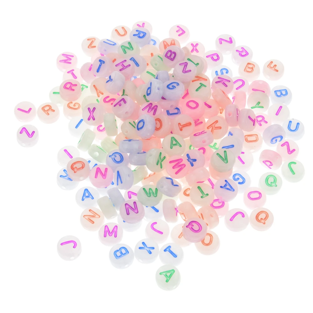 Оптовая продажа 7 мм 100 шт. светящиеся английские бусины в форме букв алфавита акриловые бусины для самостоятельного изготовления ювелирных изделий шармы браслет ожерелье