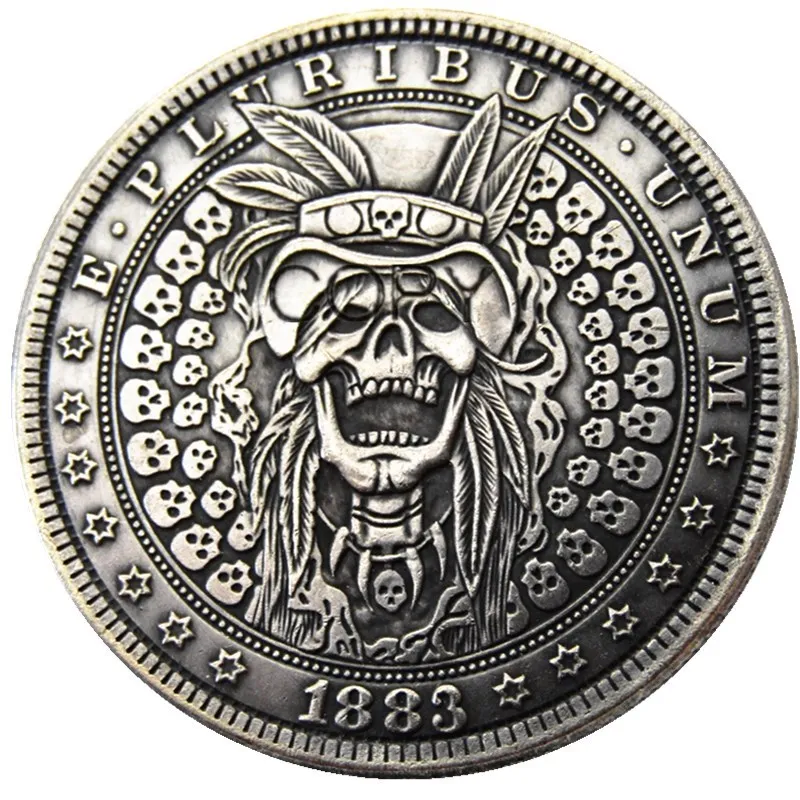 US Hobo 1921 Morgan Dollar Череп Зомби Скелетон посеребренные копии...
