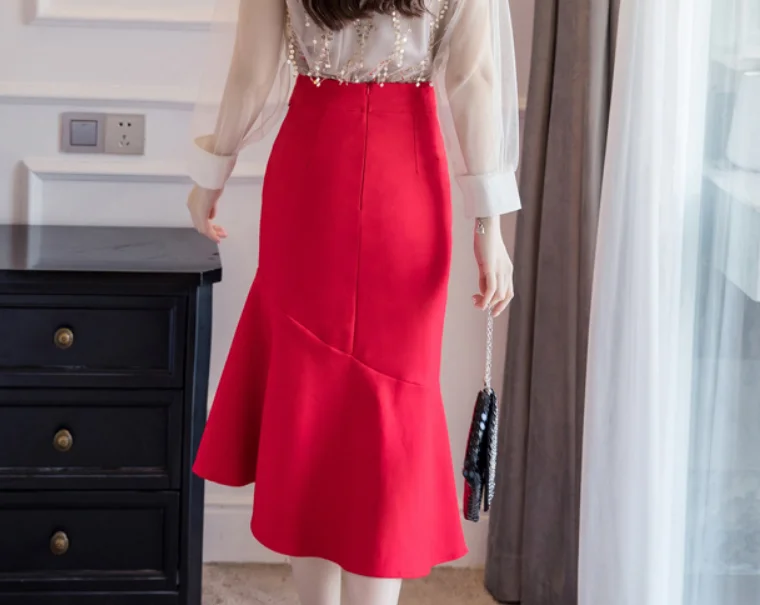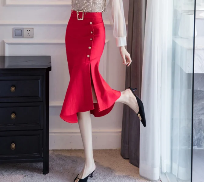 Юбка-годе Женская весенне-осенняя облегающая, размера плюс 5XL