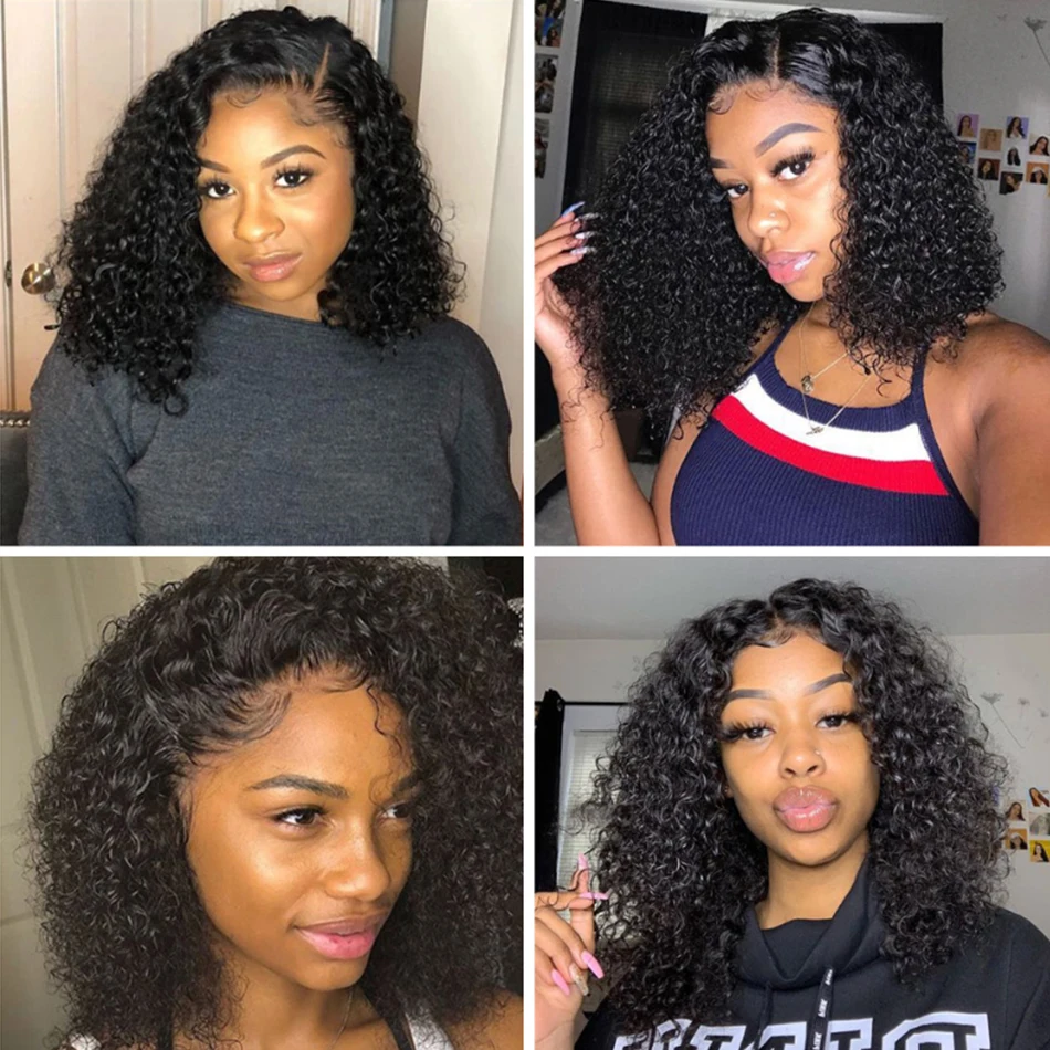 Короткие парики из натуральных волос Боб с застежкой 4X4 парик кудрявые вьющиеся бразильские девственные кудри 8-16 дюймов натуральная линия волос 13X4 парик Боб кудрявый