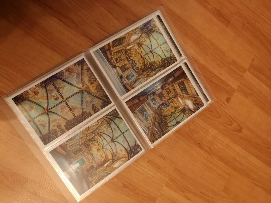 Альбом был очень хорошо завернут и потребовал почти три недели, чтобы прибыть в Великобританию. Пара страниц имеет небольшие углубления, но это не большая проблема для меня, так как этот альбом был намного дешевле, чем другие альбомы с открытками в Великобритании. Я обязательно подумаю о покупке большего количества.